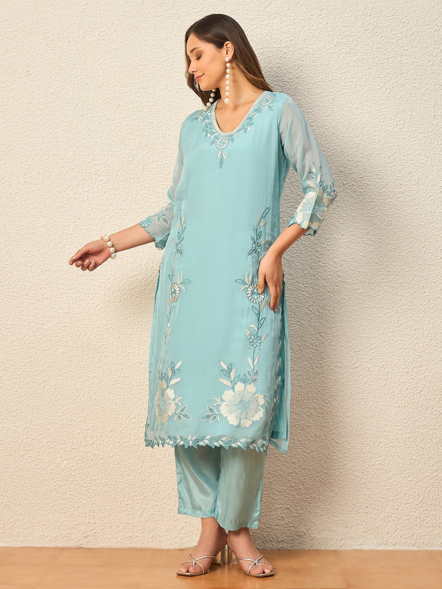 Women Floral Embroidered Regular Thread Work Kurta with Trousers & With Dupatta