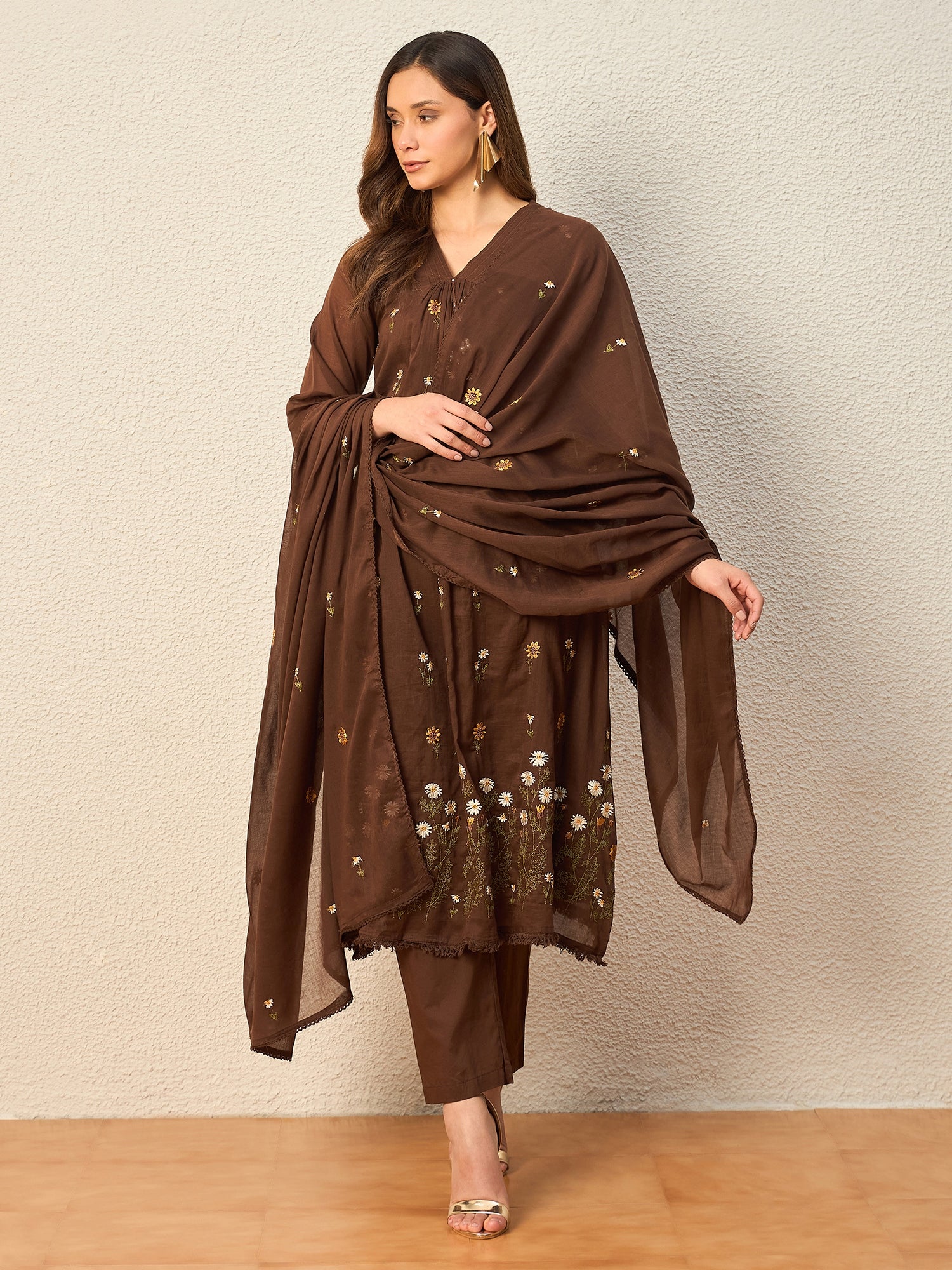 Women Floral Embroidered Regular Thread Work Kurta with Trousers & With Dupatta