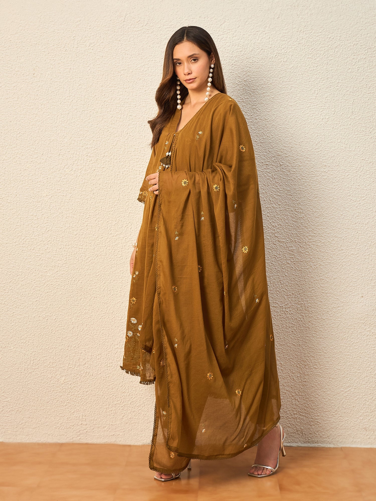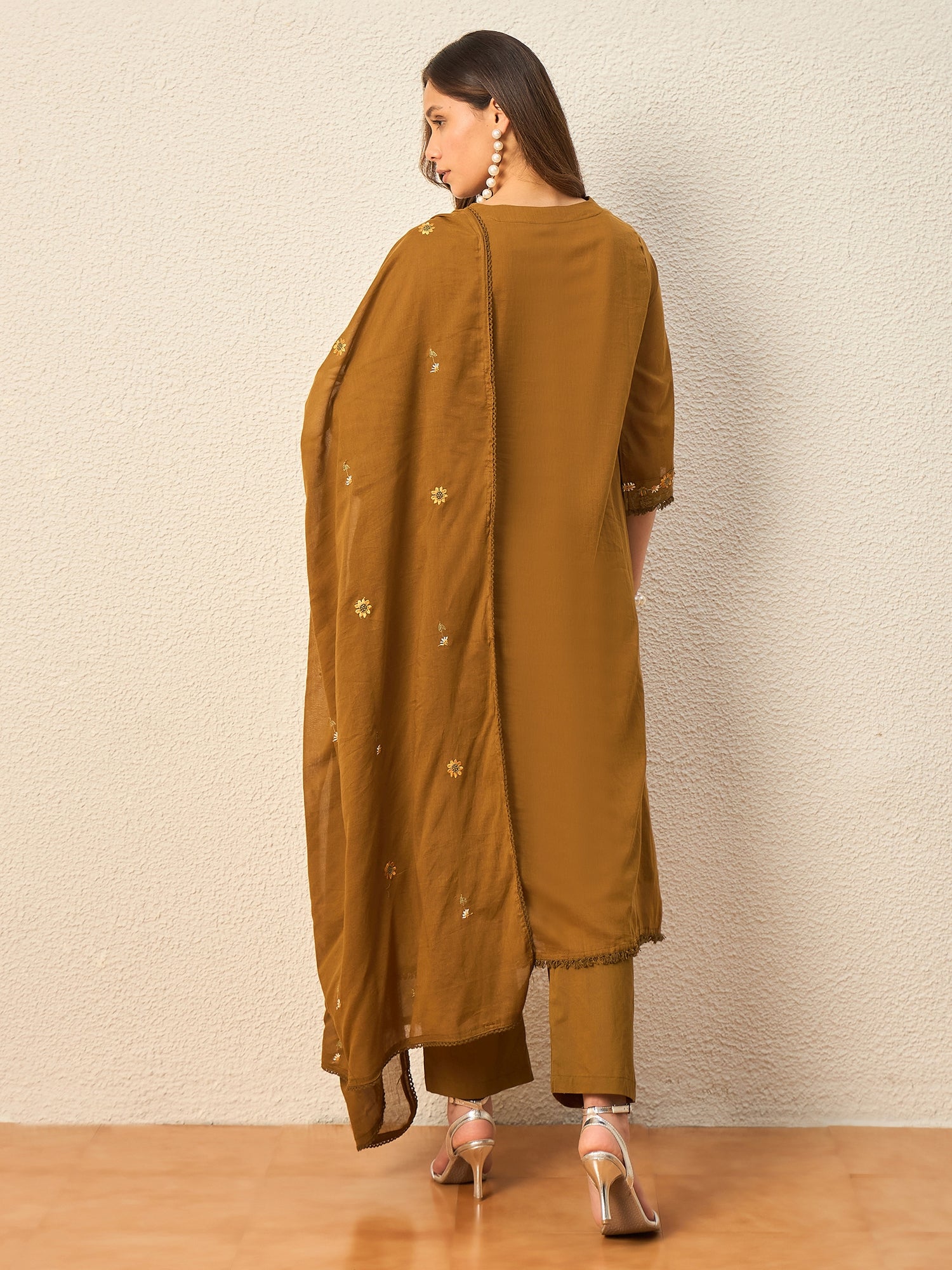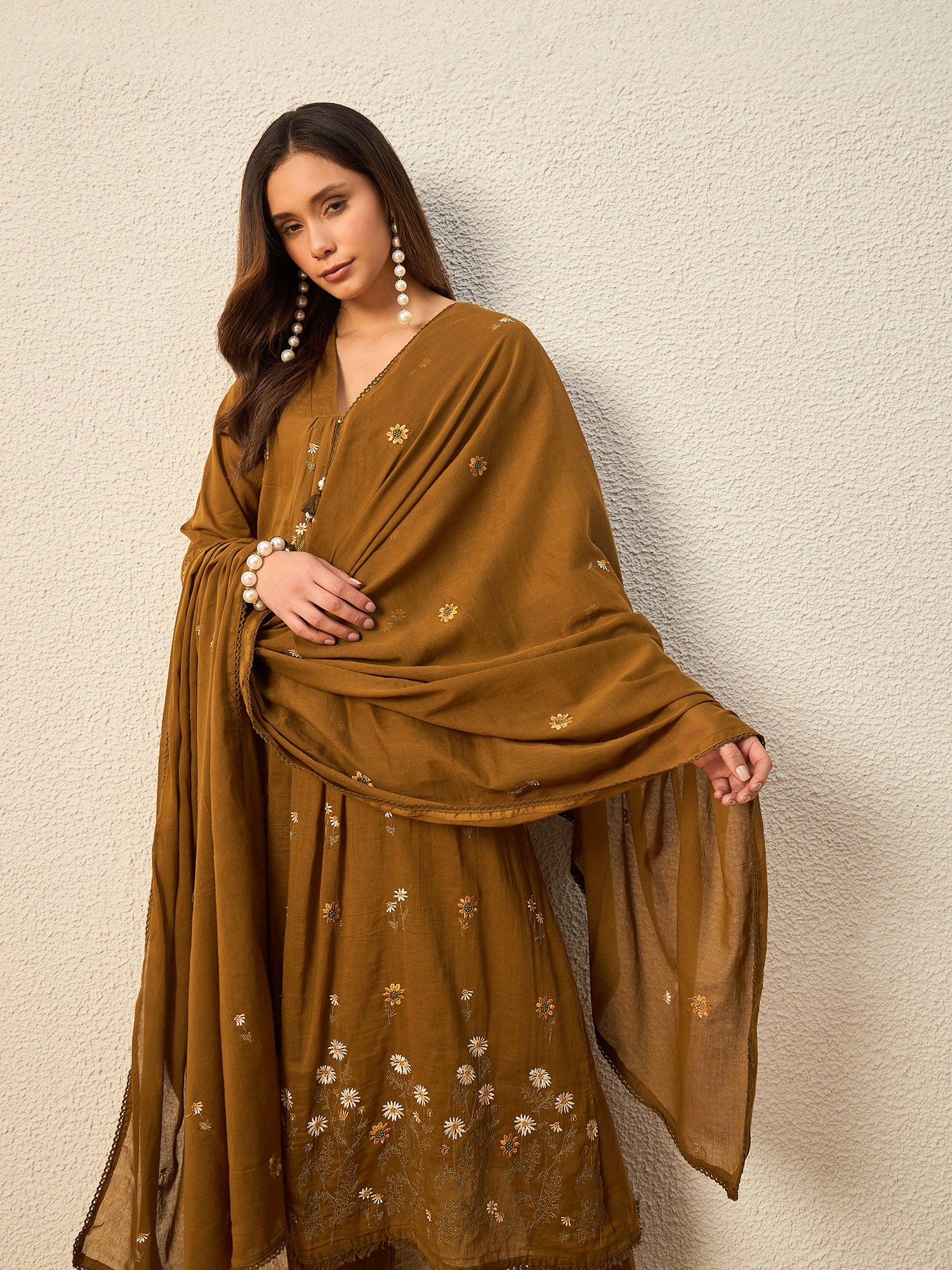 Women Floral Embroidered Regular Thread Work Kurta with Trousers & With Dupatta