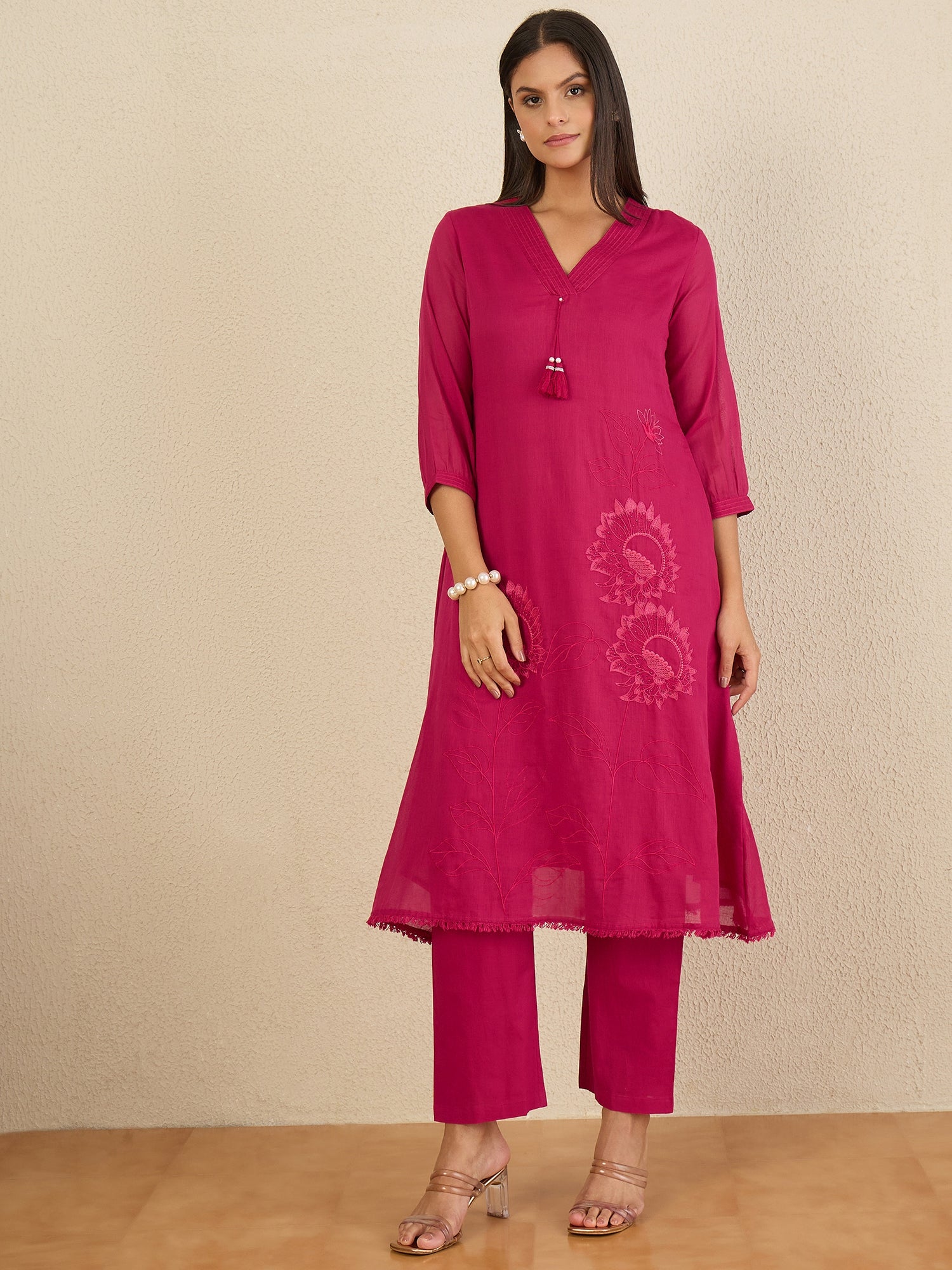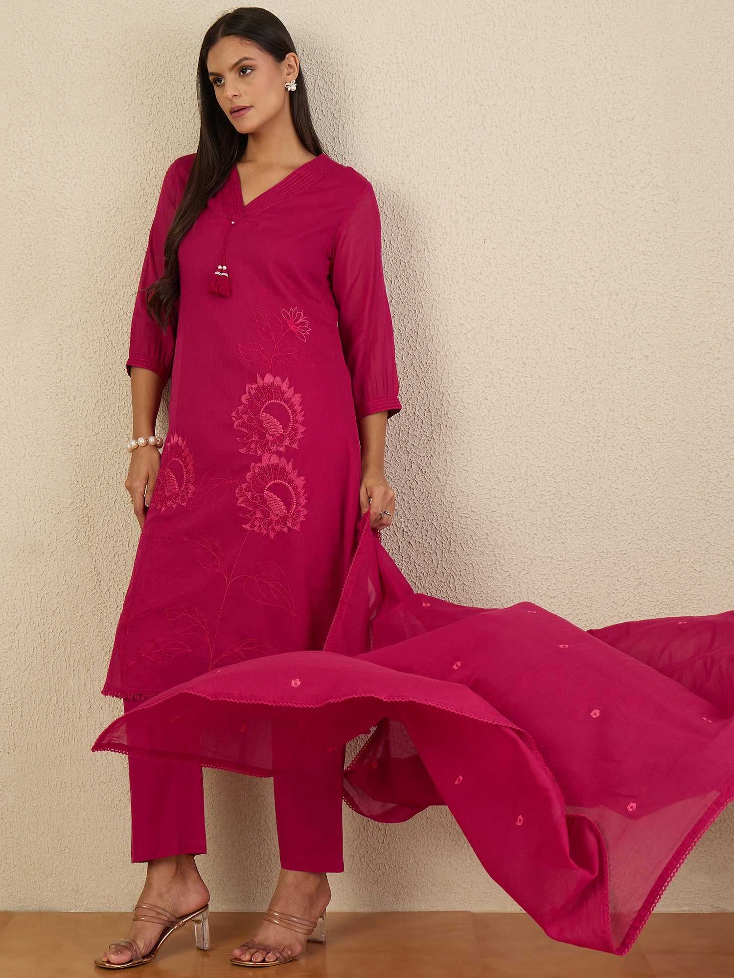 - Floral embroidered