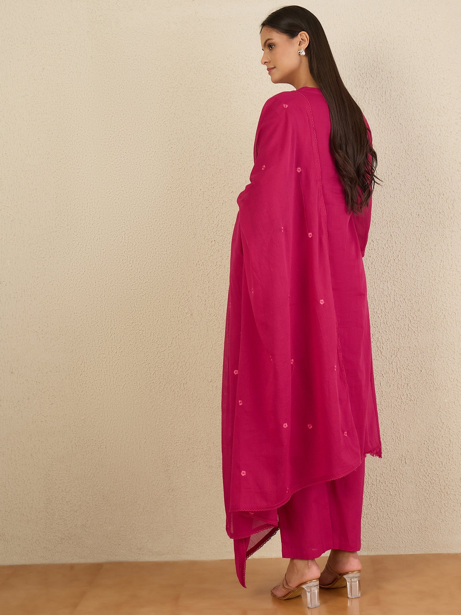Maroon embroidered Kurta with Trousers with dupatta