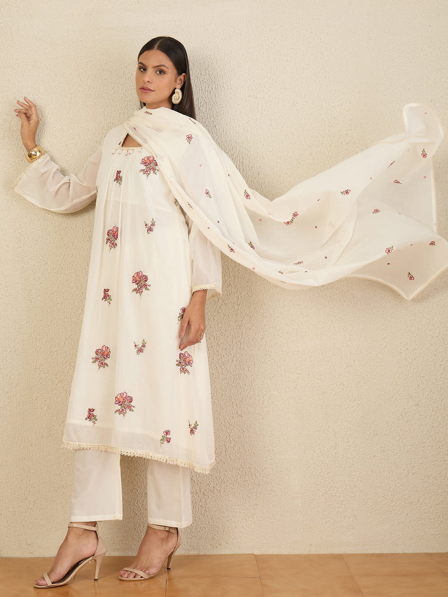 Women Floral Embroidered Regular Thread Work Kurta with Trousers & With Dupatta