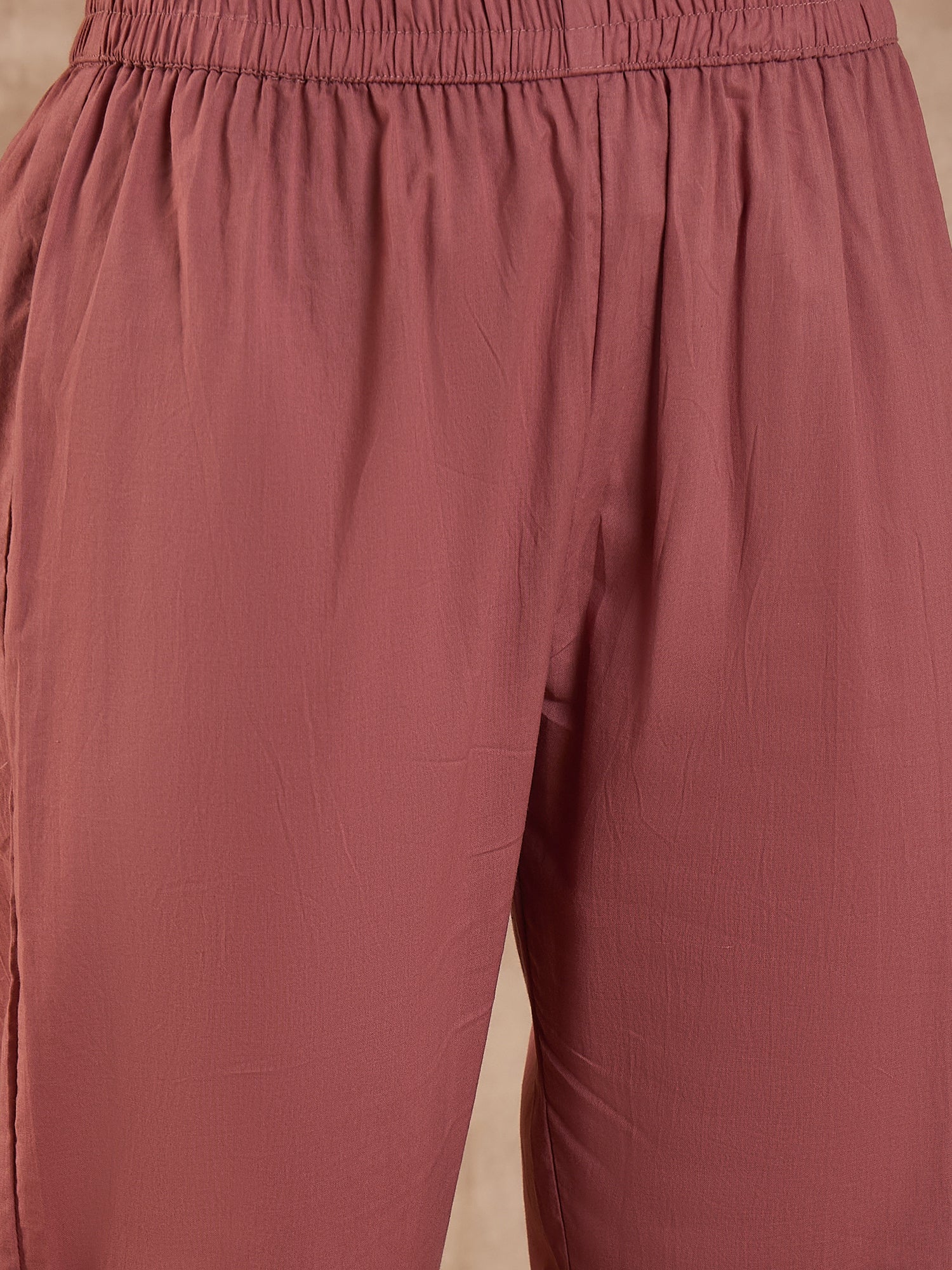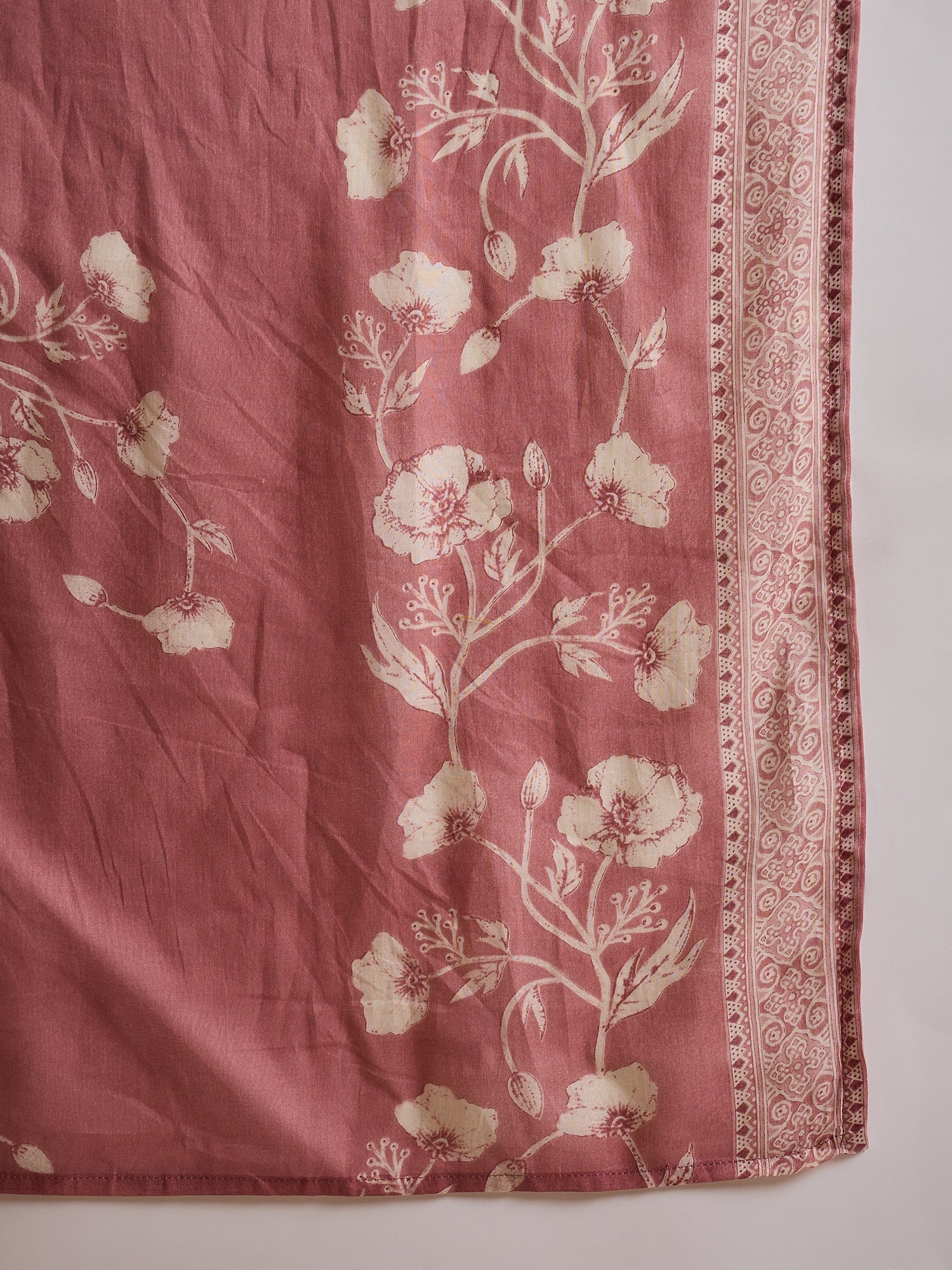 Maroon & Beige Printed Kurta with Trousers & Dupatta