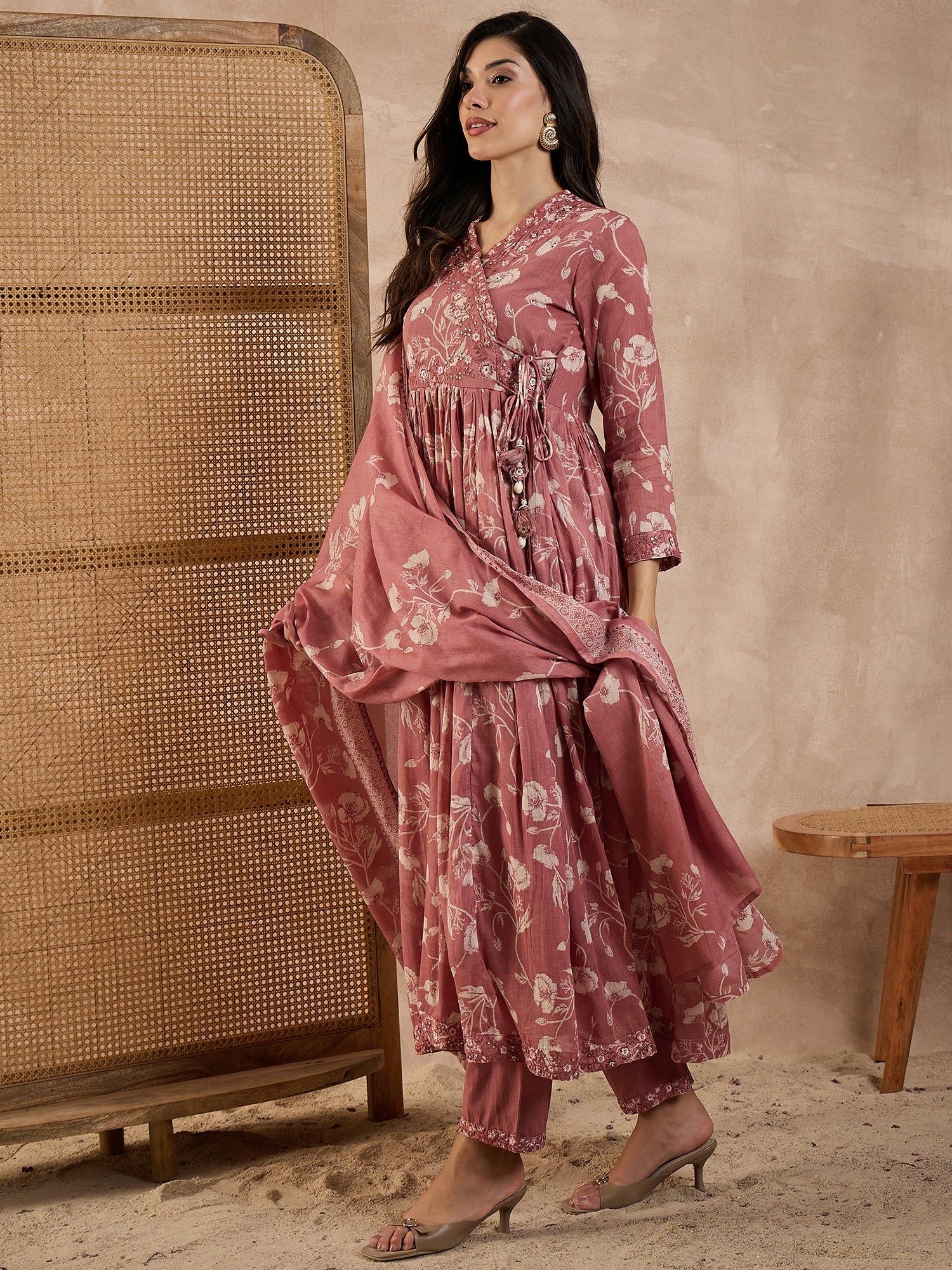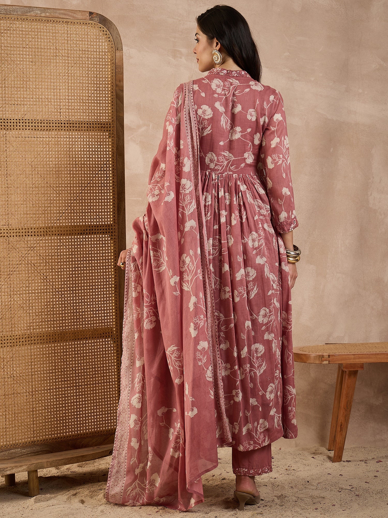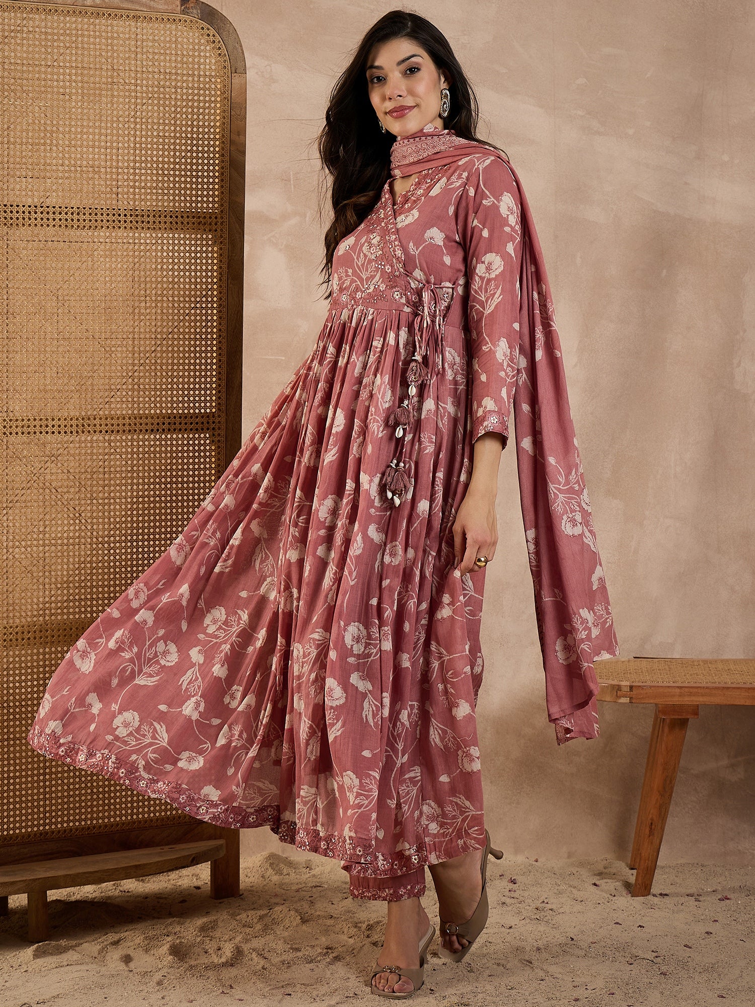 Women Floral Printed Anarkali Kurta with Trousers & Dupatta