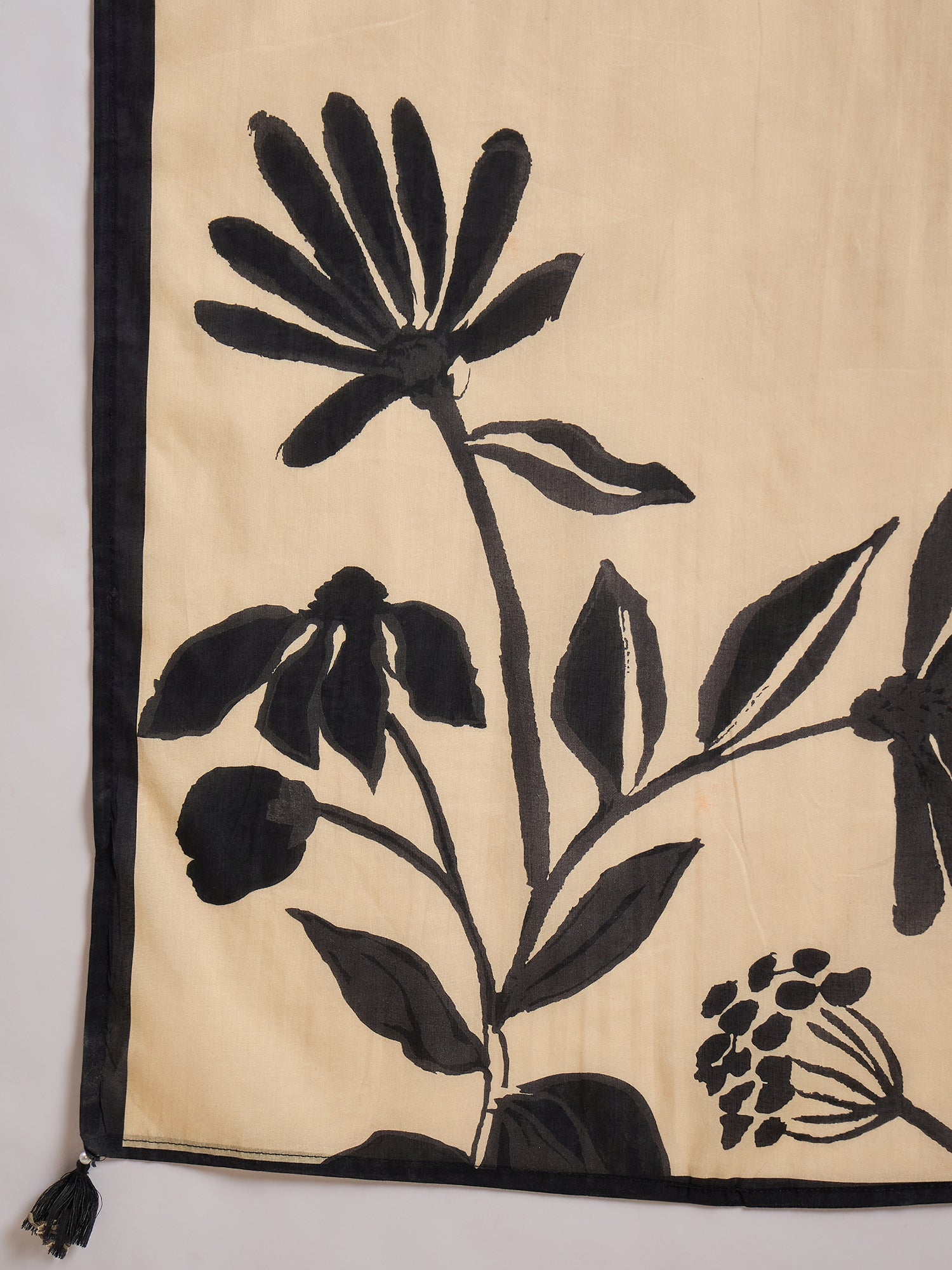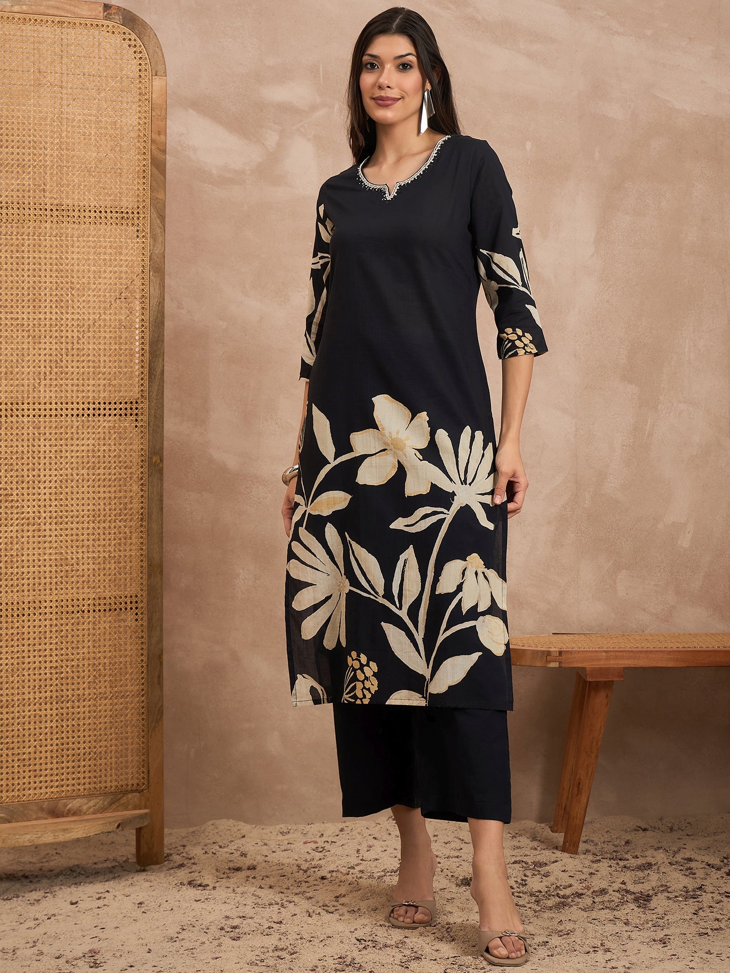 Floral - Printed - Black Kurta