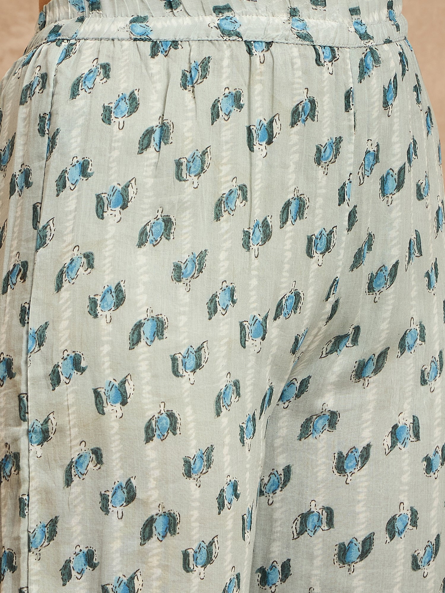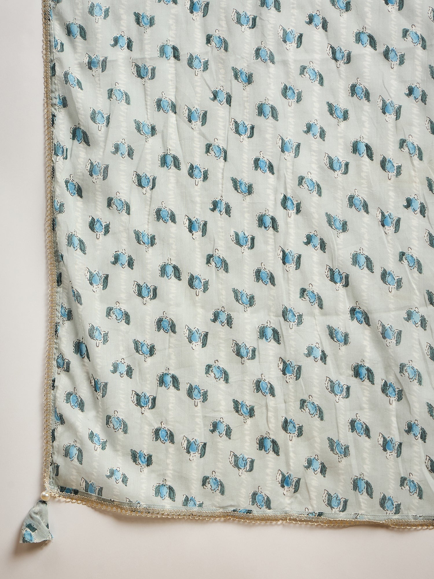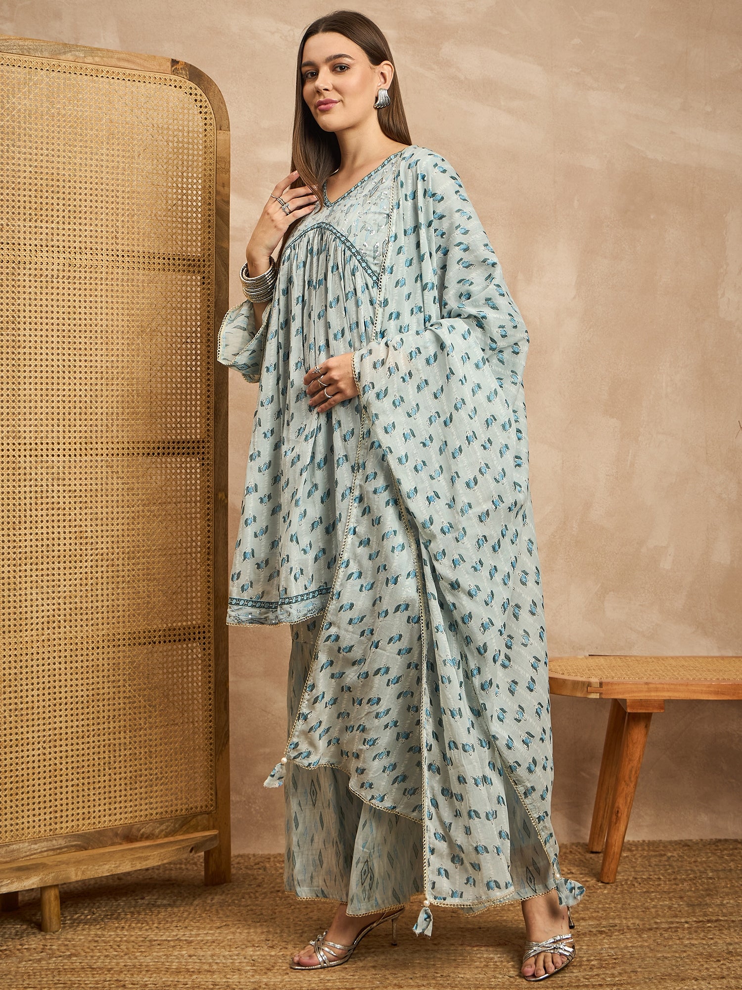 Women Floral Printed Empire Beads and Stones Kurta with Sharara & With Dupatta