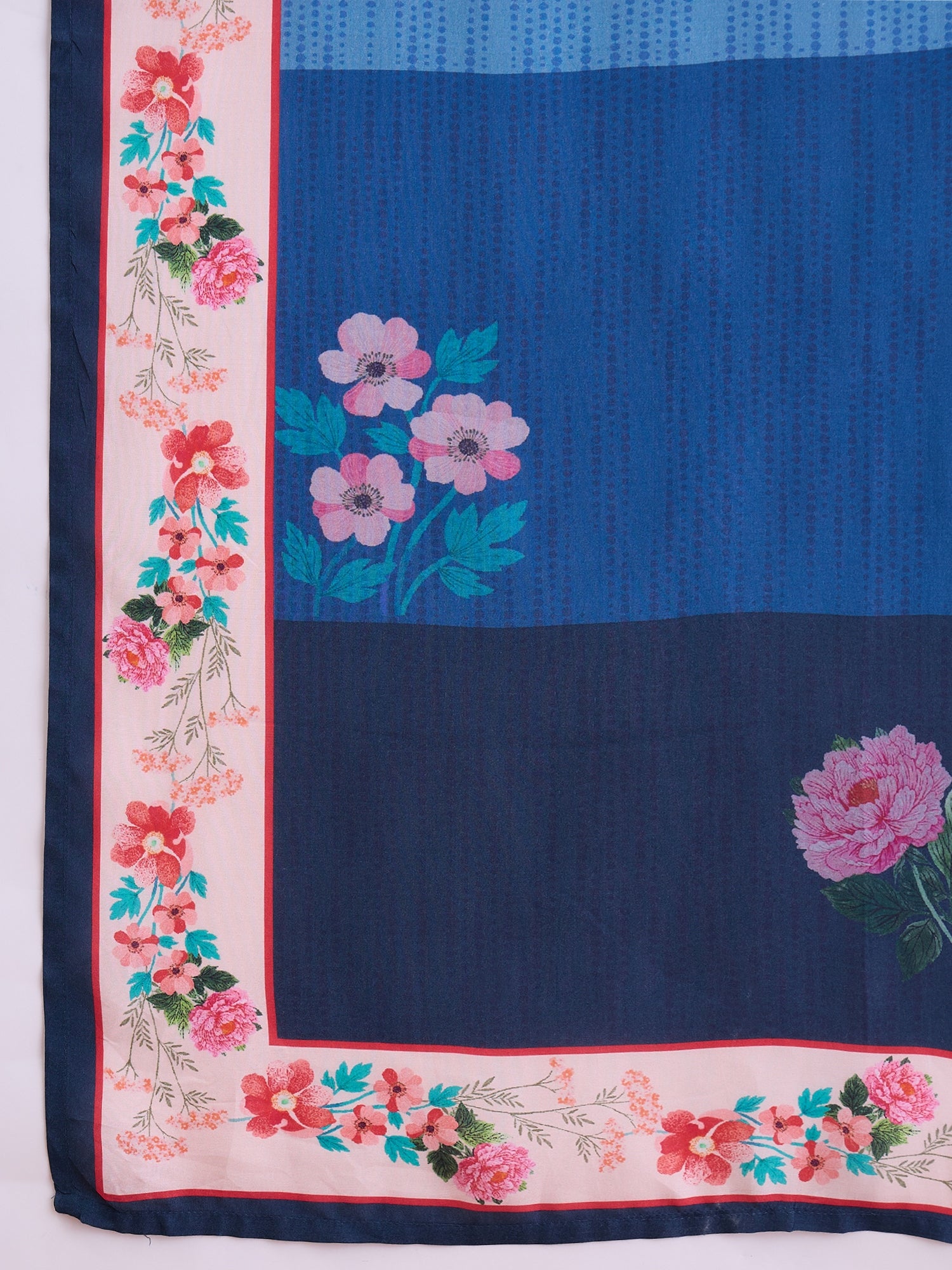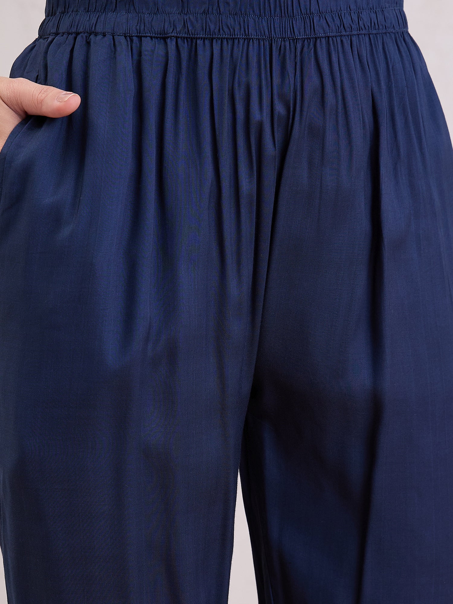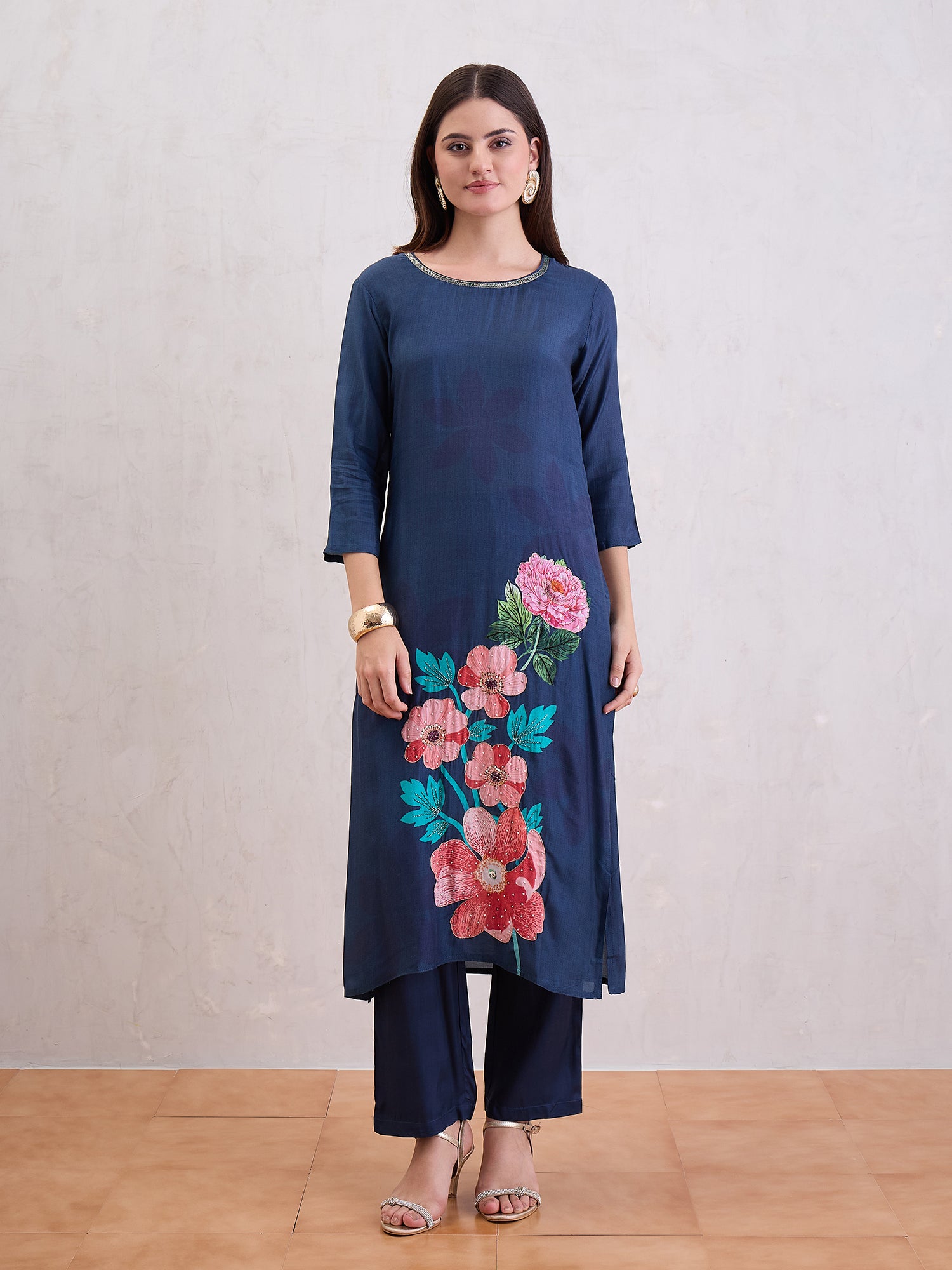 Navy Blue, Peach, Green Printed Kurta with Trousers
