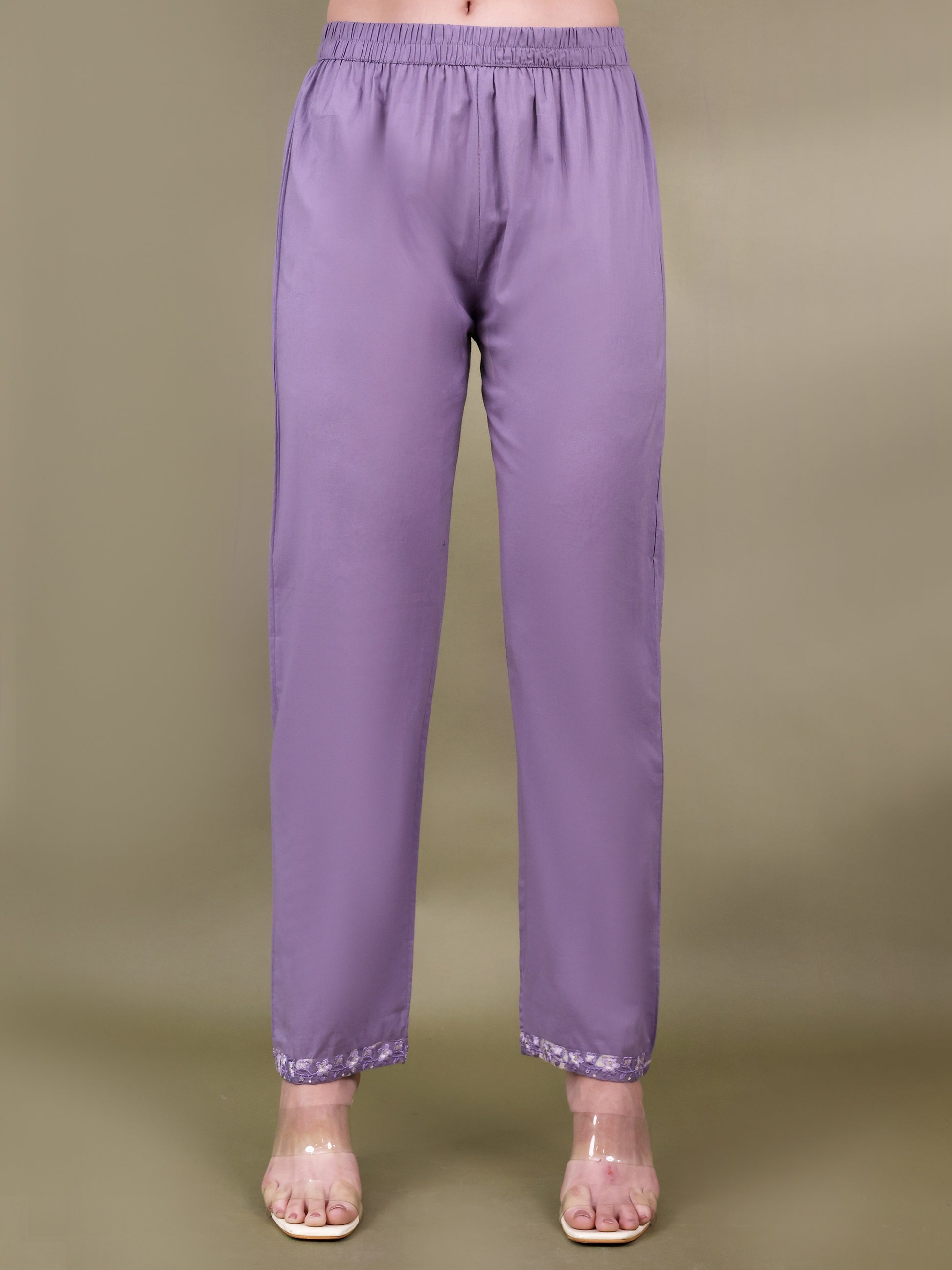 Lavender & White Printed Kurti with Trousers & Dupatta
