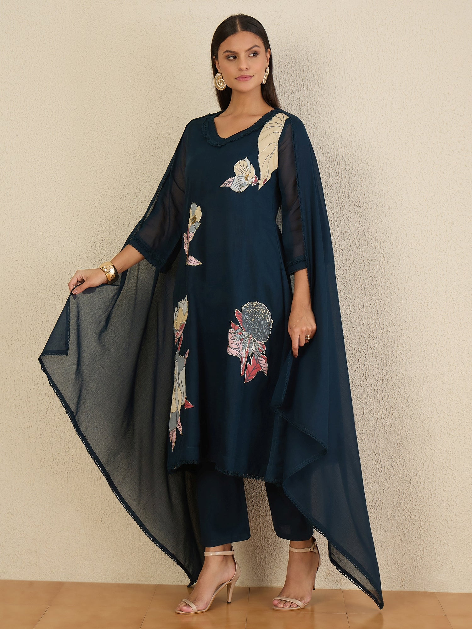 Women Floral Printed Regular Kurta with Trousers & With Dupatta