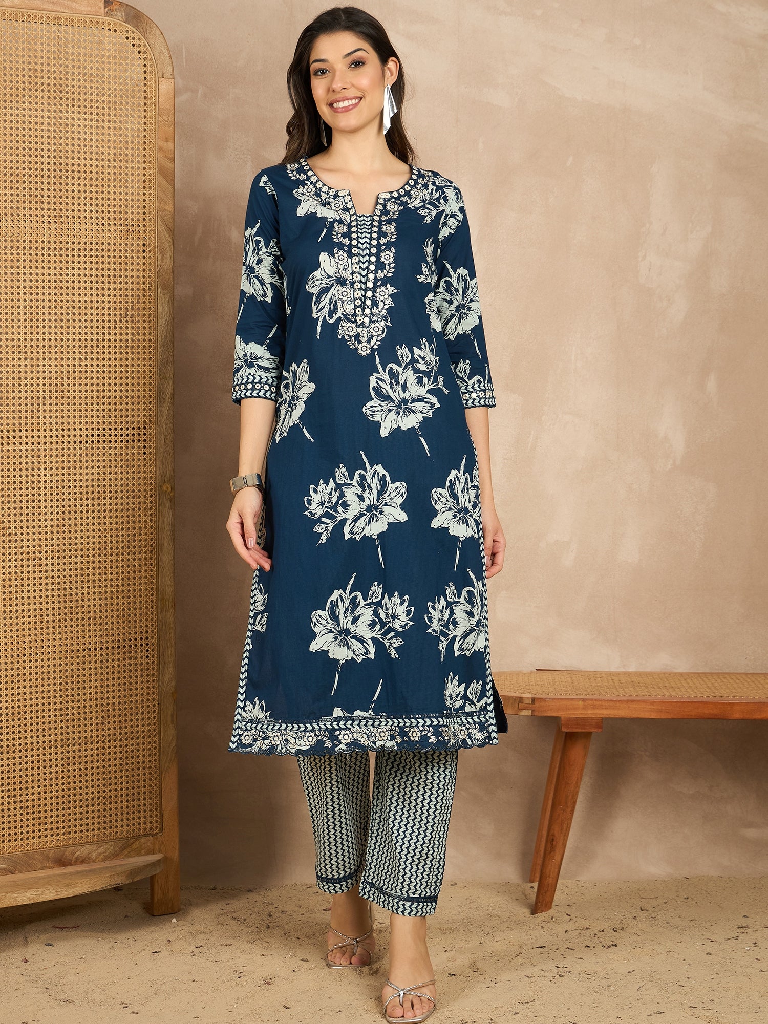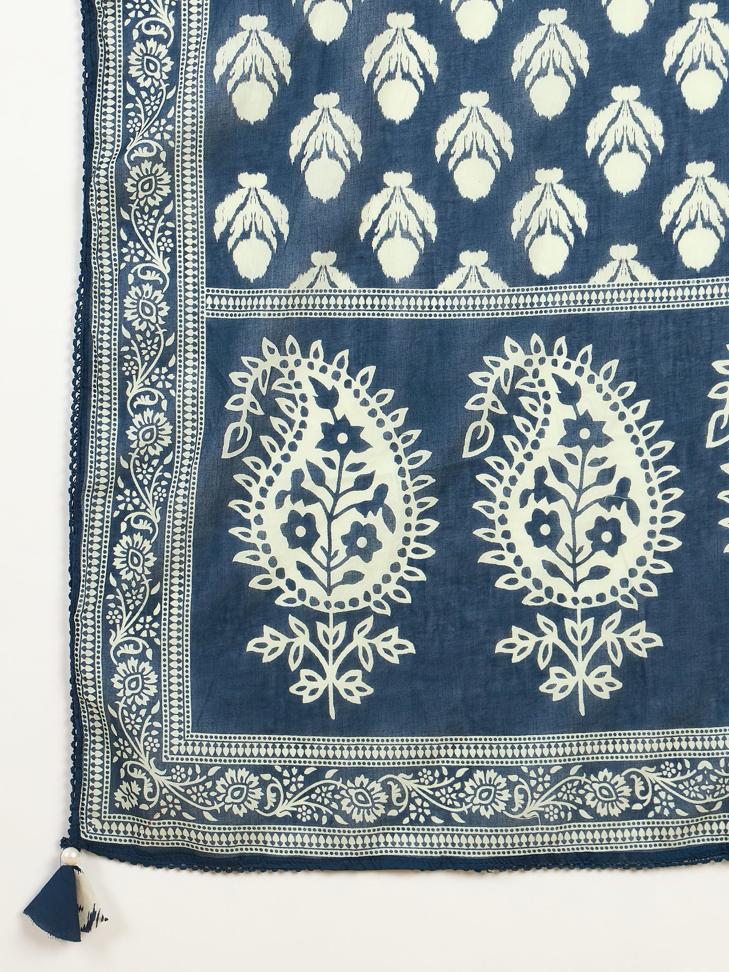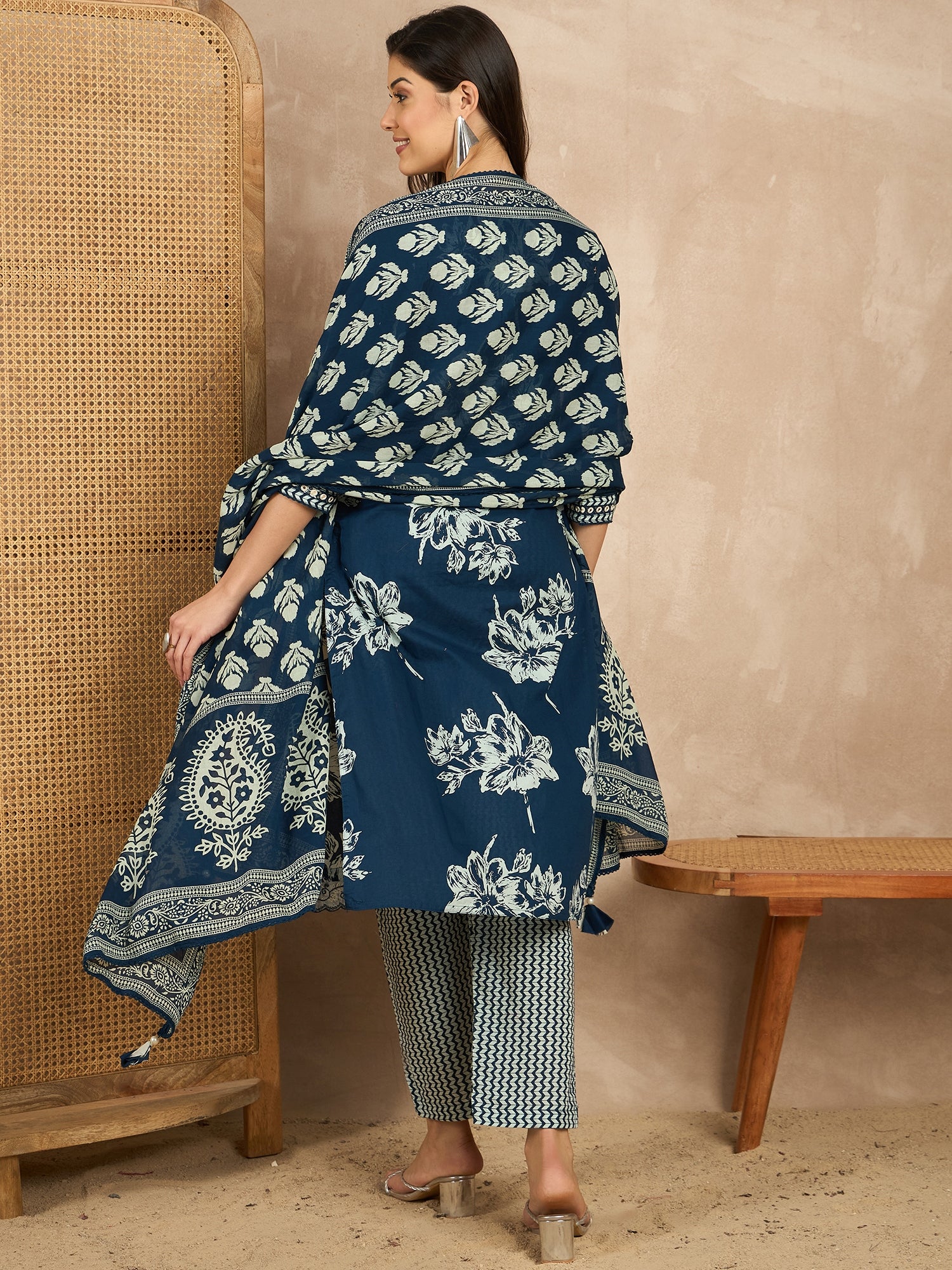 Navy blue printed Kurta with Trousers with dupatta