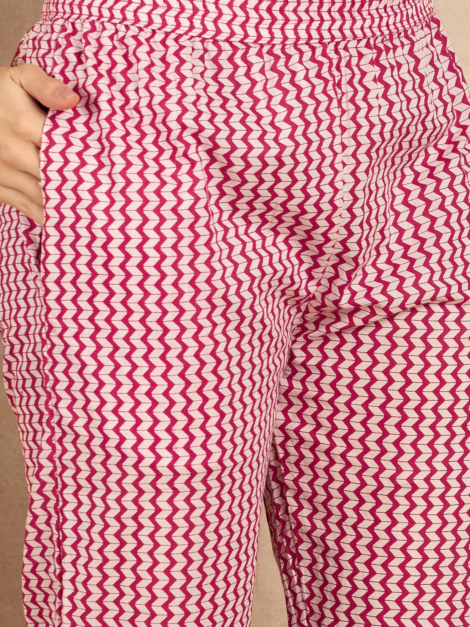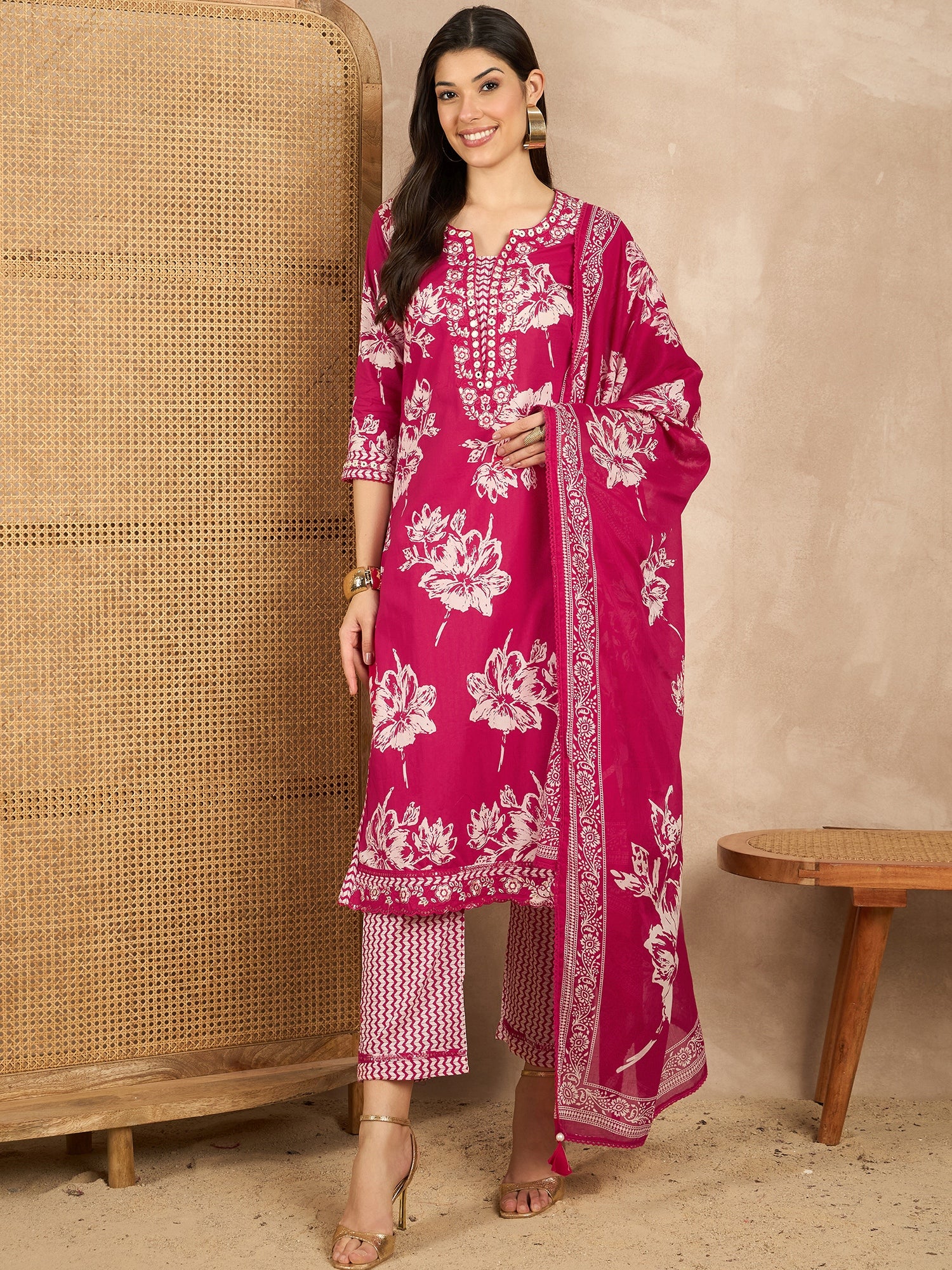 Women Floral Printed Regular Thread Work Pure Cotton Kurta with Trousers & With Dupatta