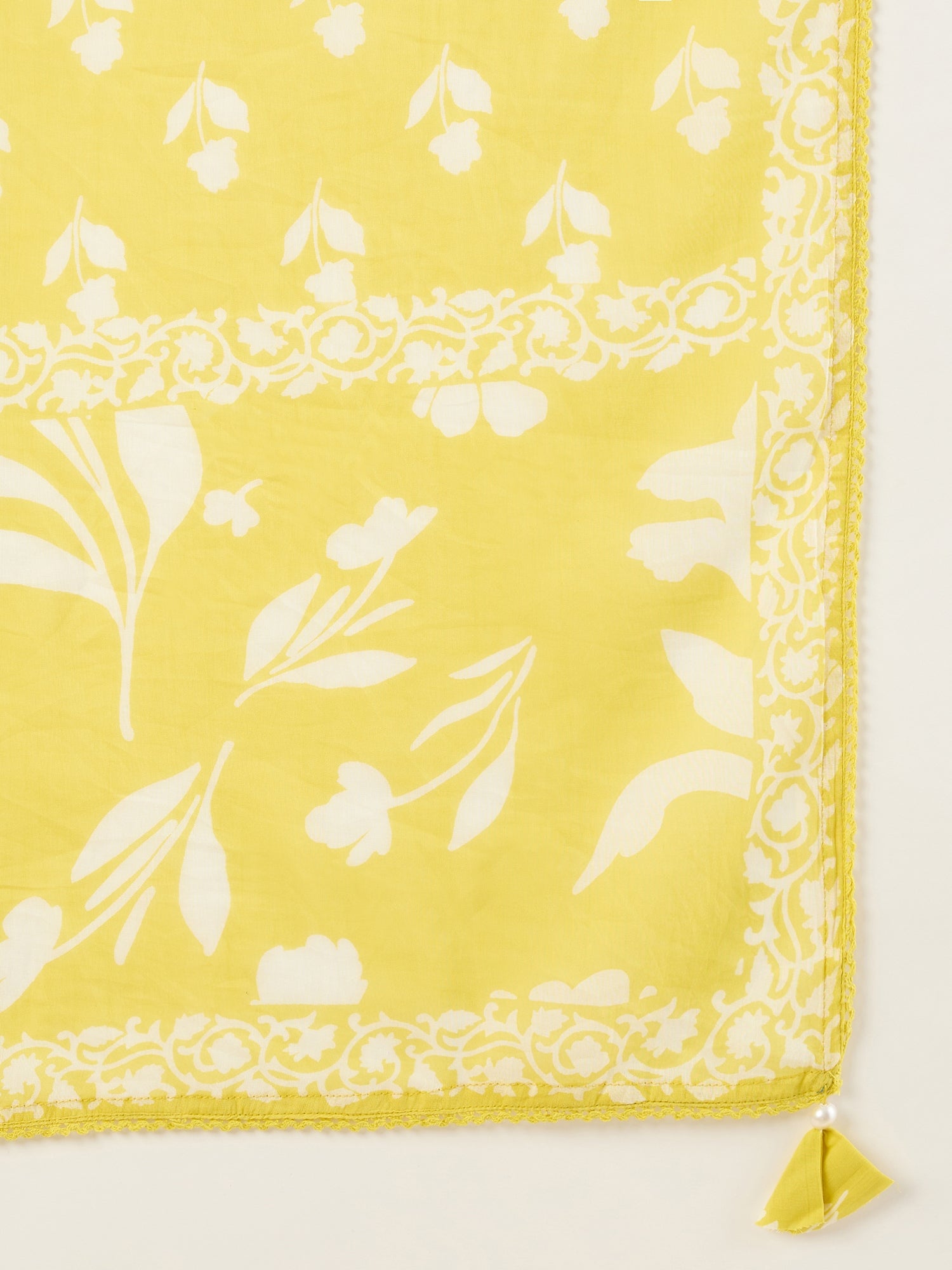 Women Floral Printed Regular Thread Work Pure Cotton Kurta with Trousers & With Dupatta