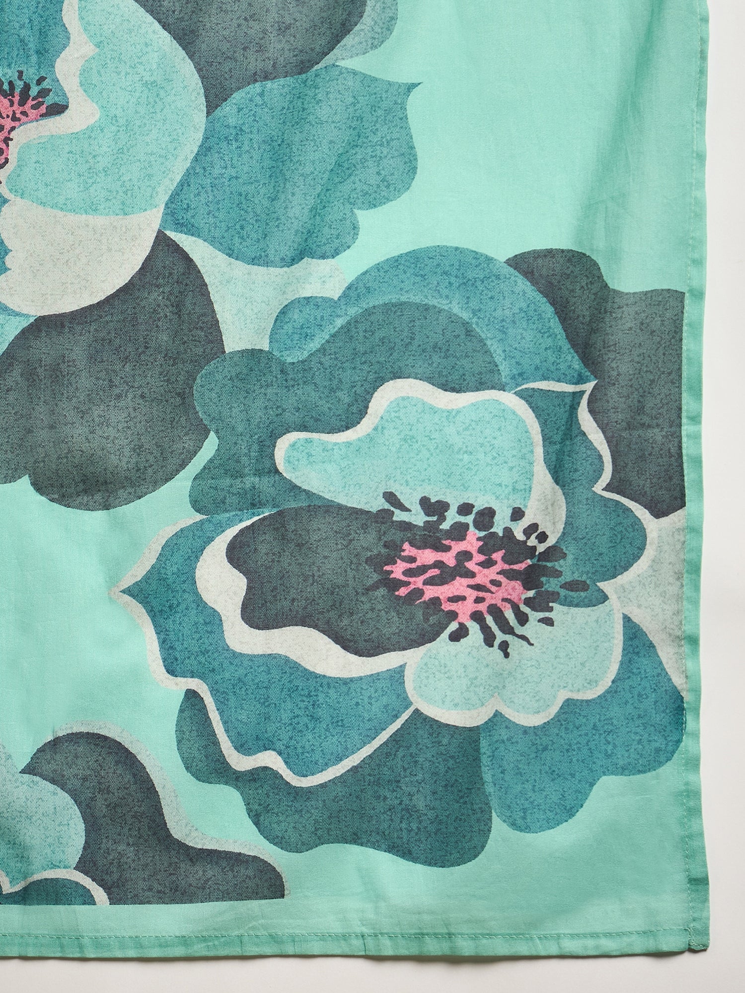 Women Floral Printed Thread Work Pure Cotton Straight Kurta with Trousers & Dupatta