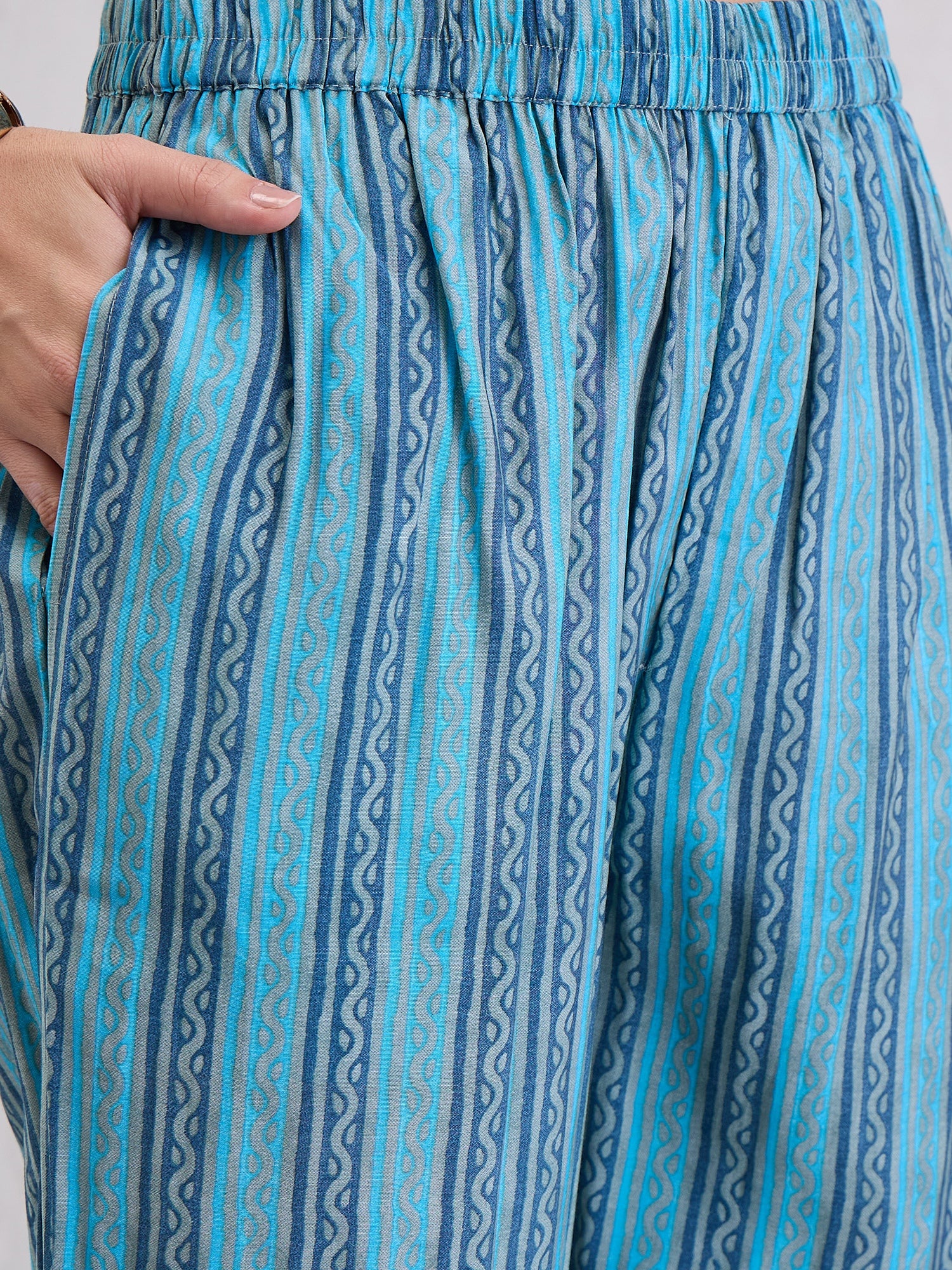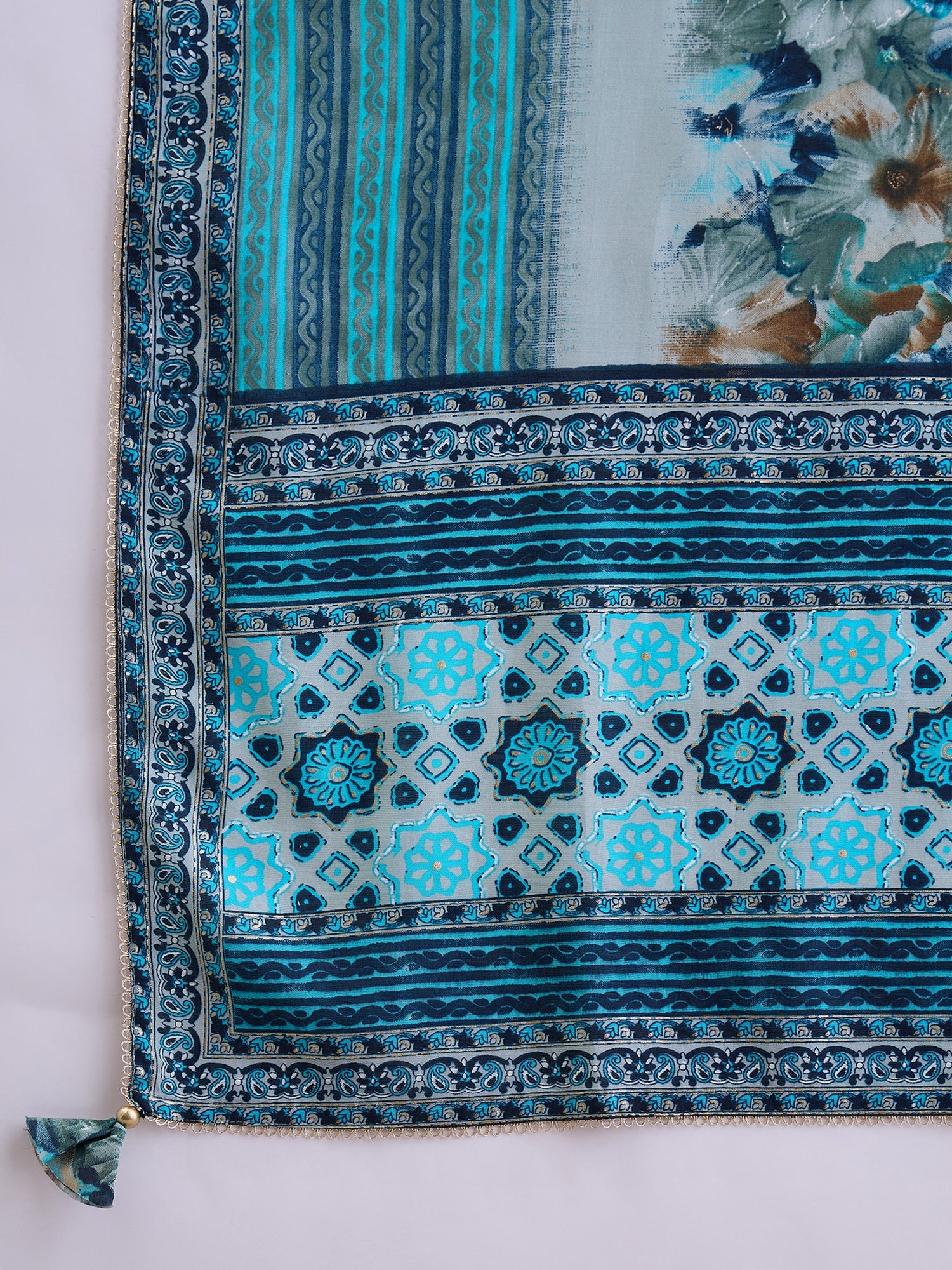 Turquoise blue embroidered Kurta with Trousers with dupatta