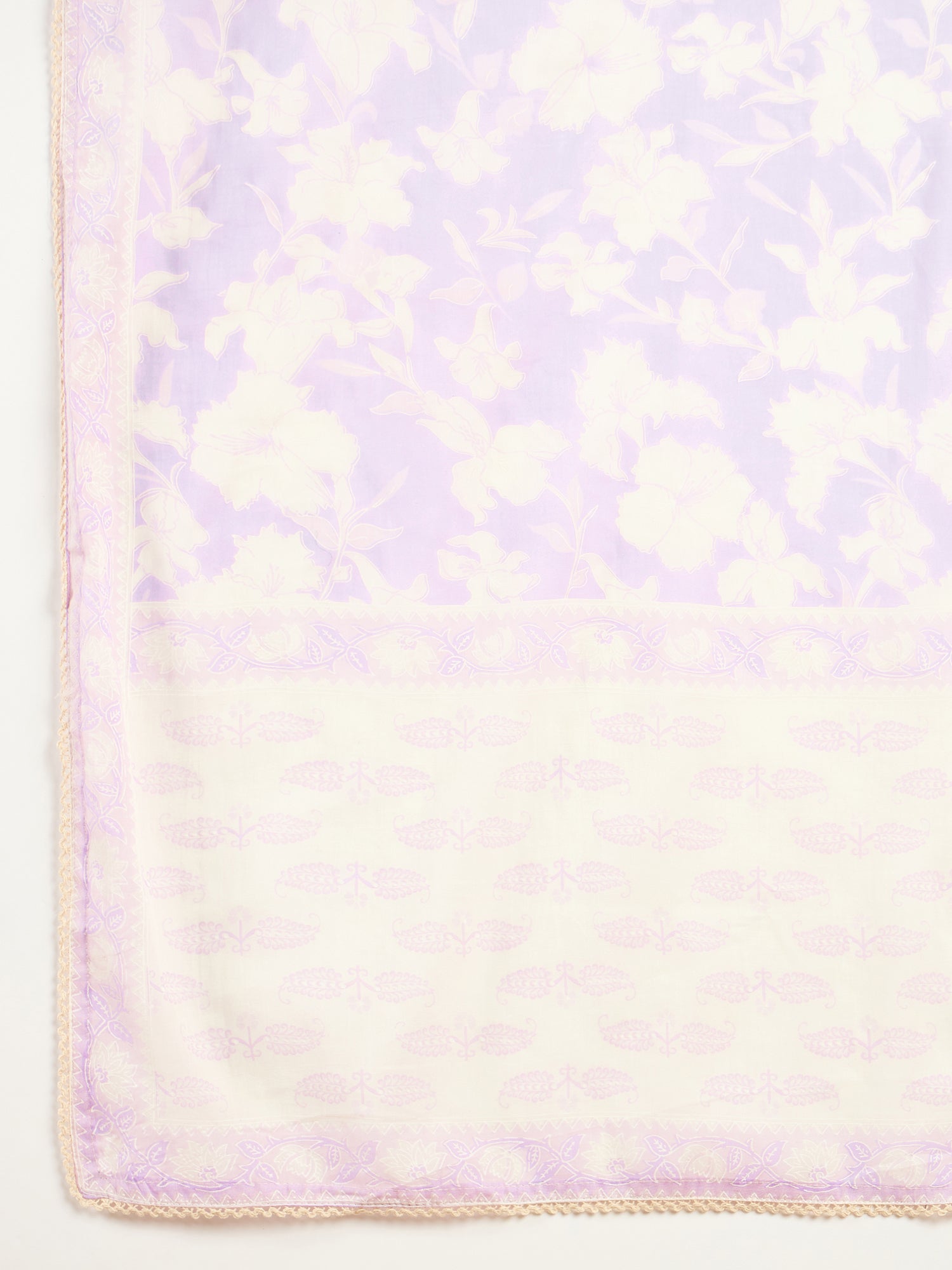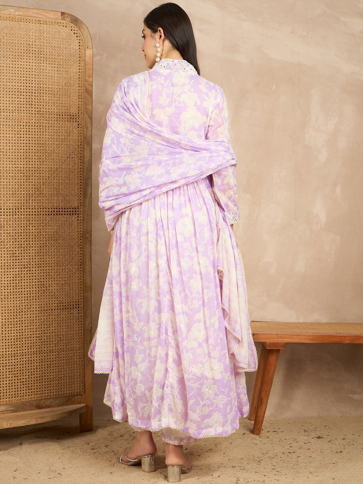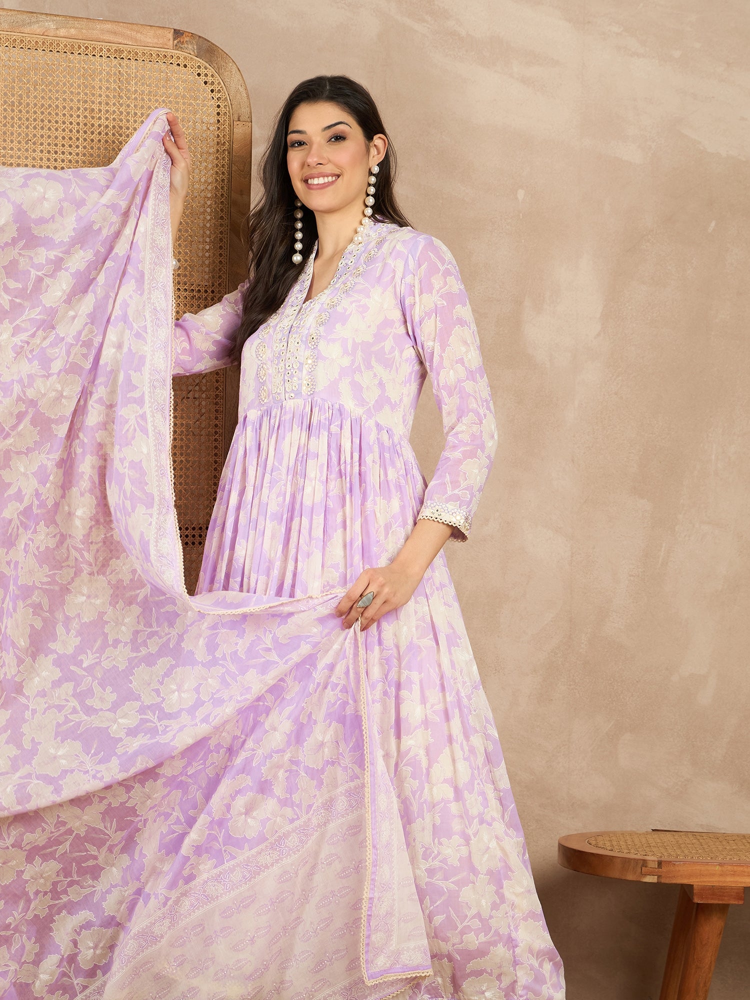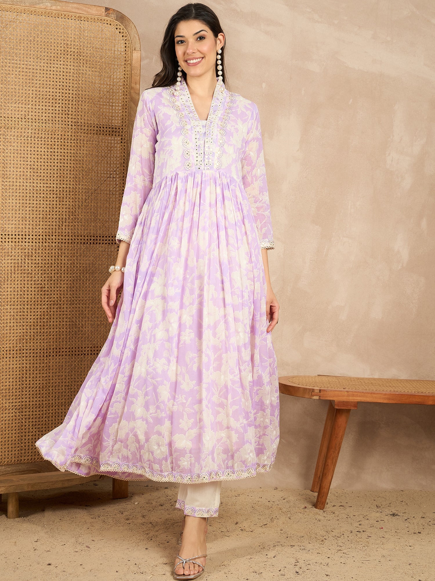 Women Printed Pleated Mirror Work Kurta with Trousers & With Dupatta