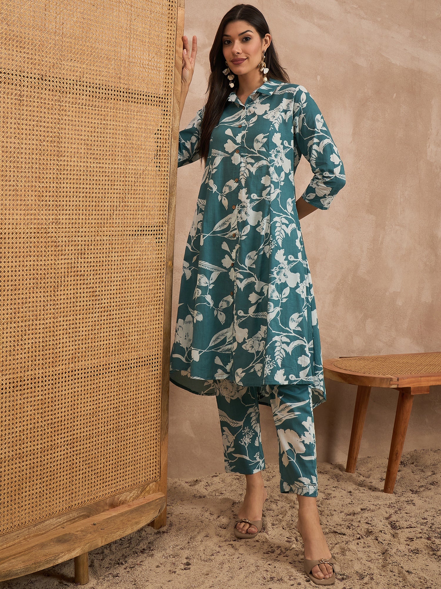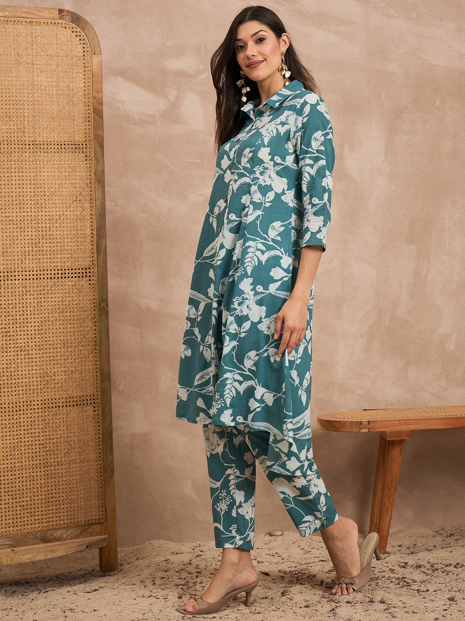 Women Printed Pure Cotton Tunic With Trousers Co-Ords