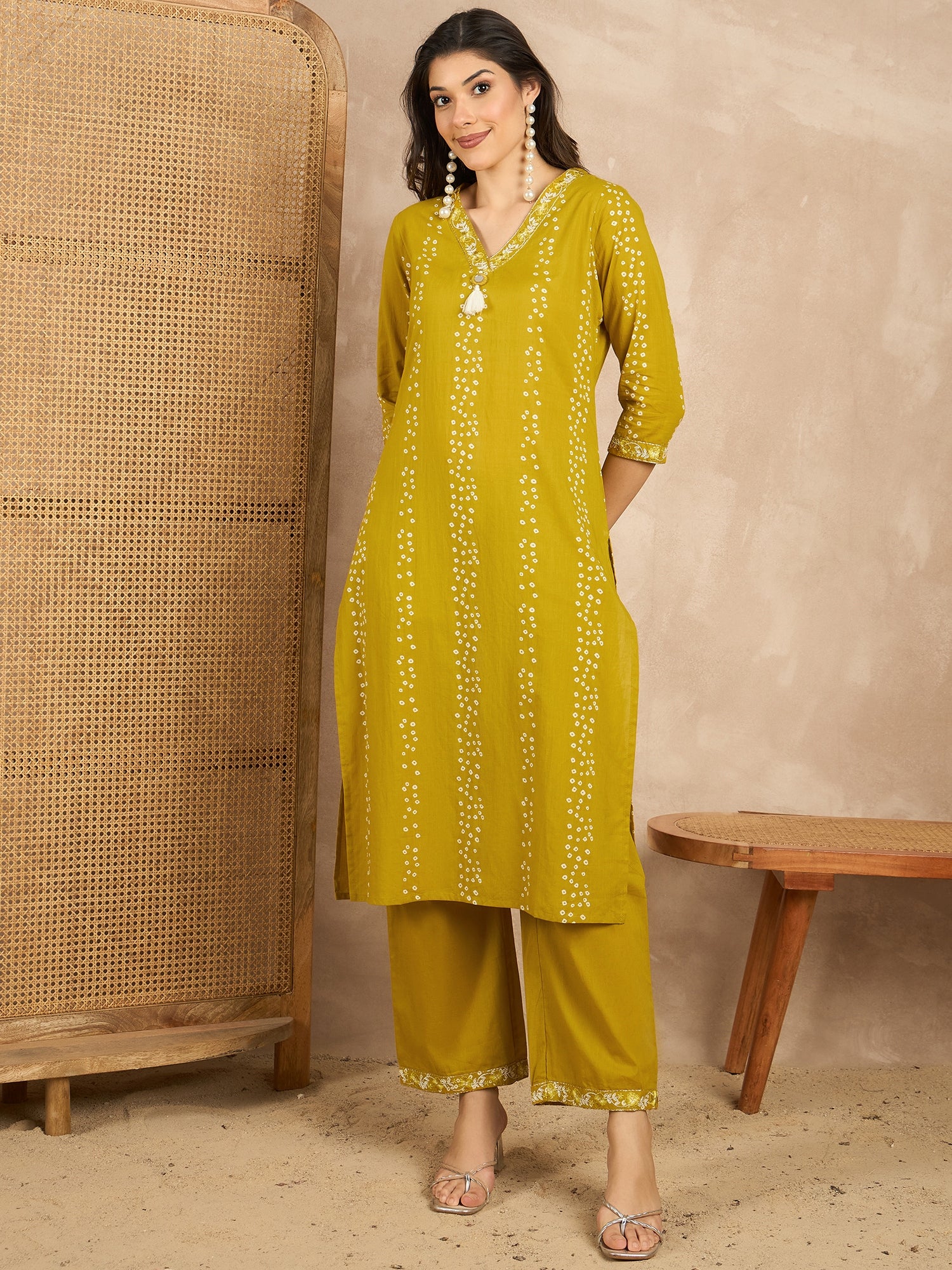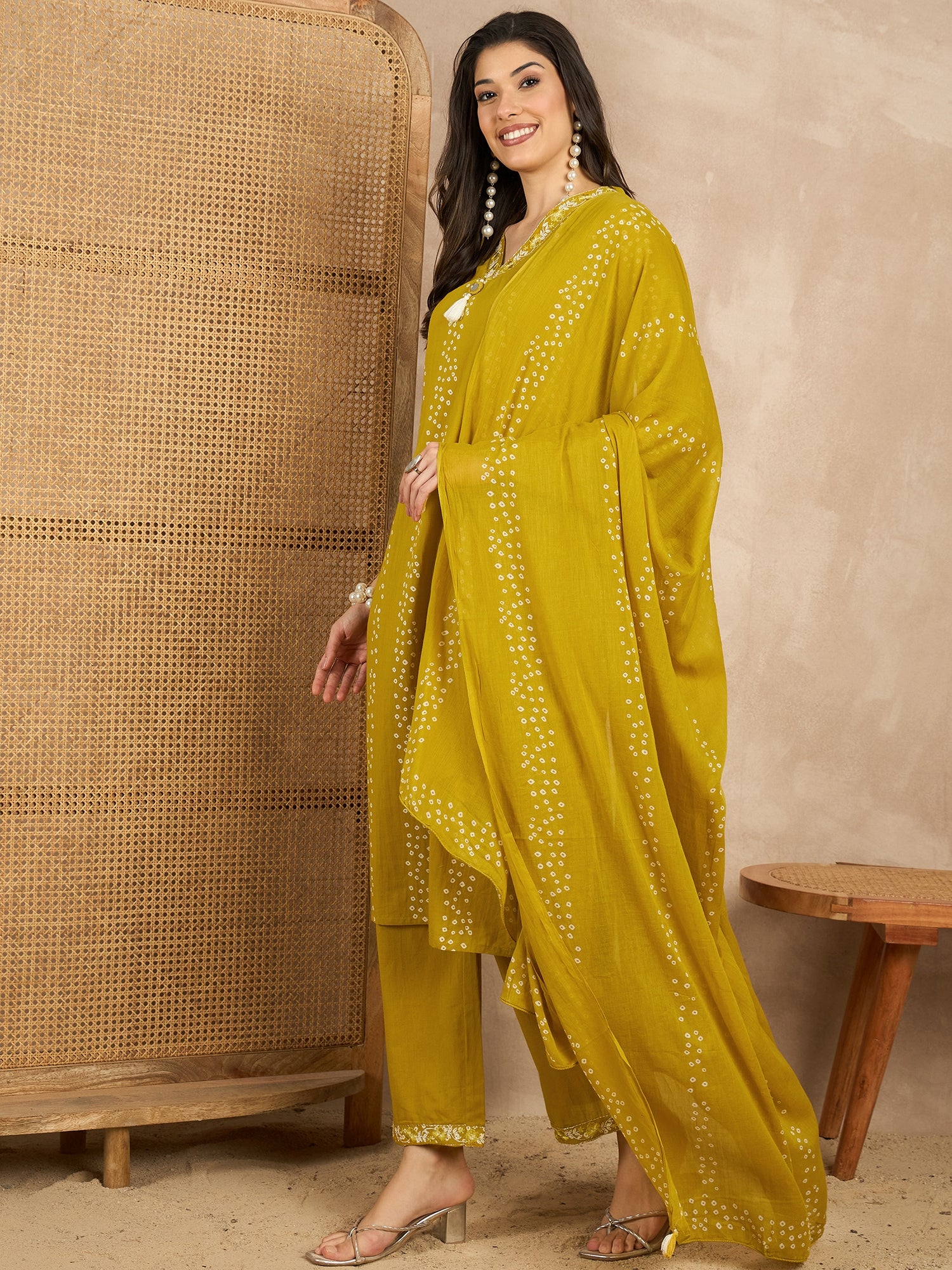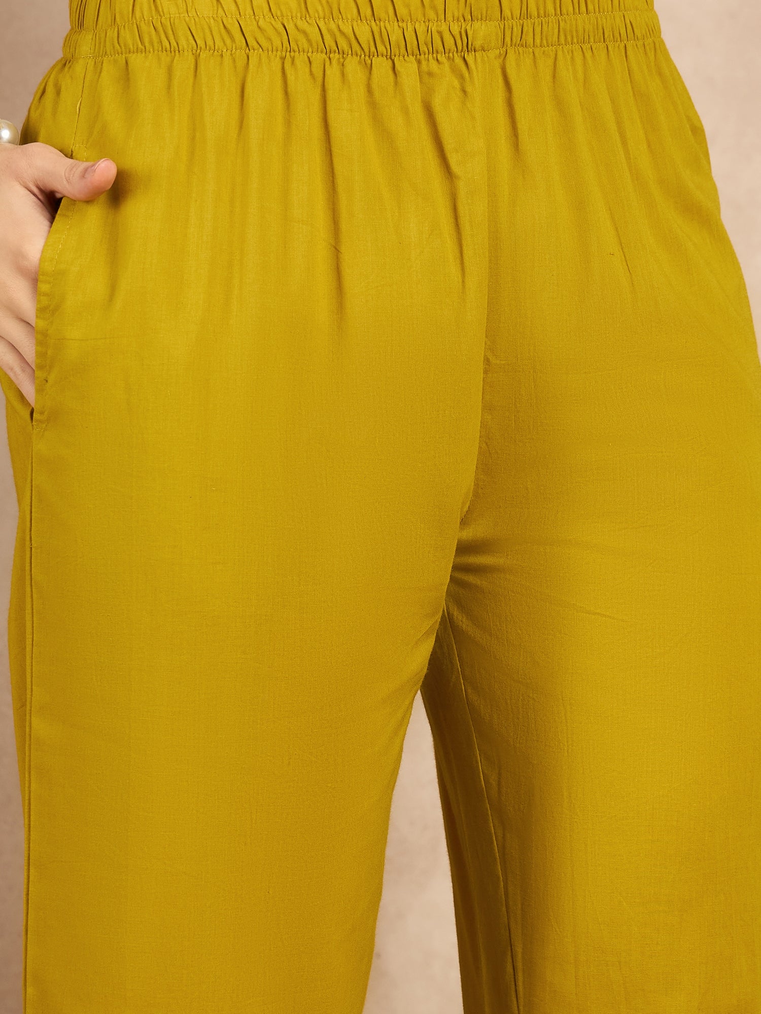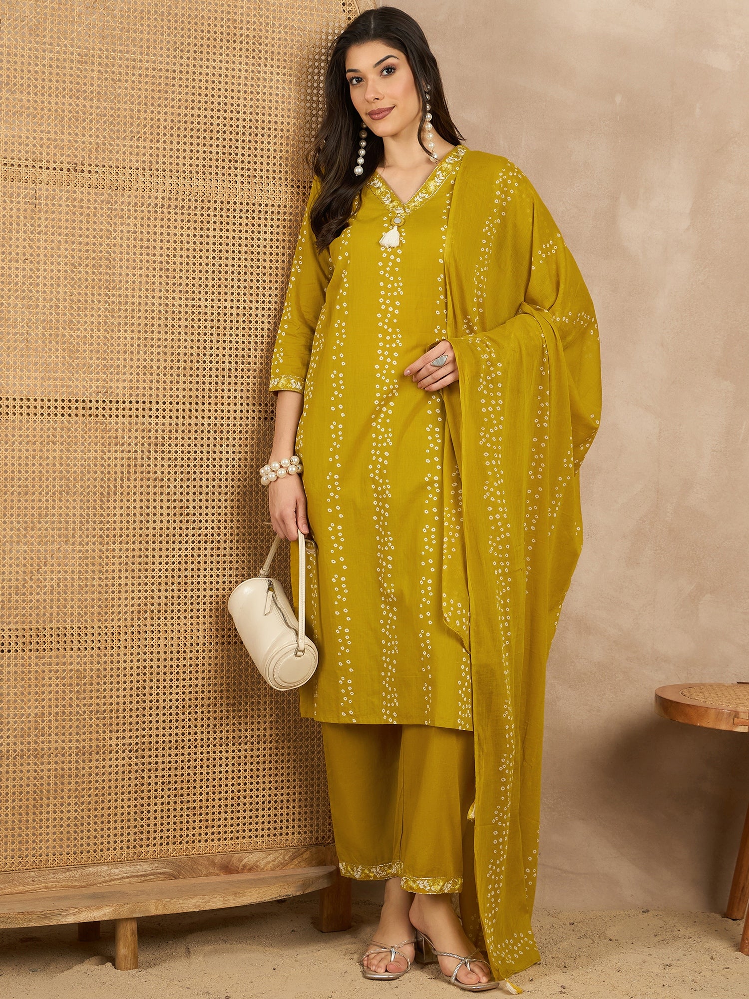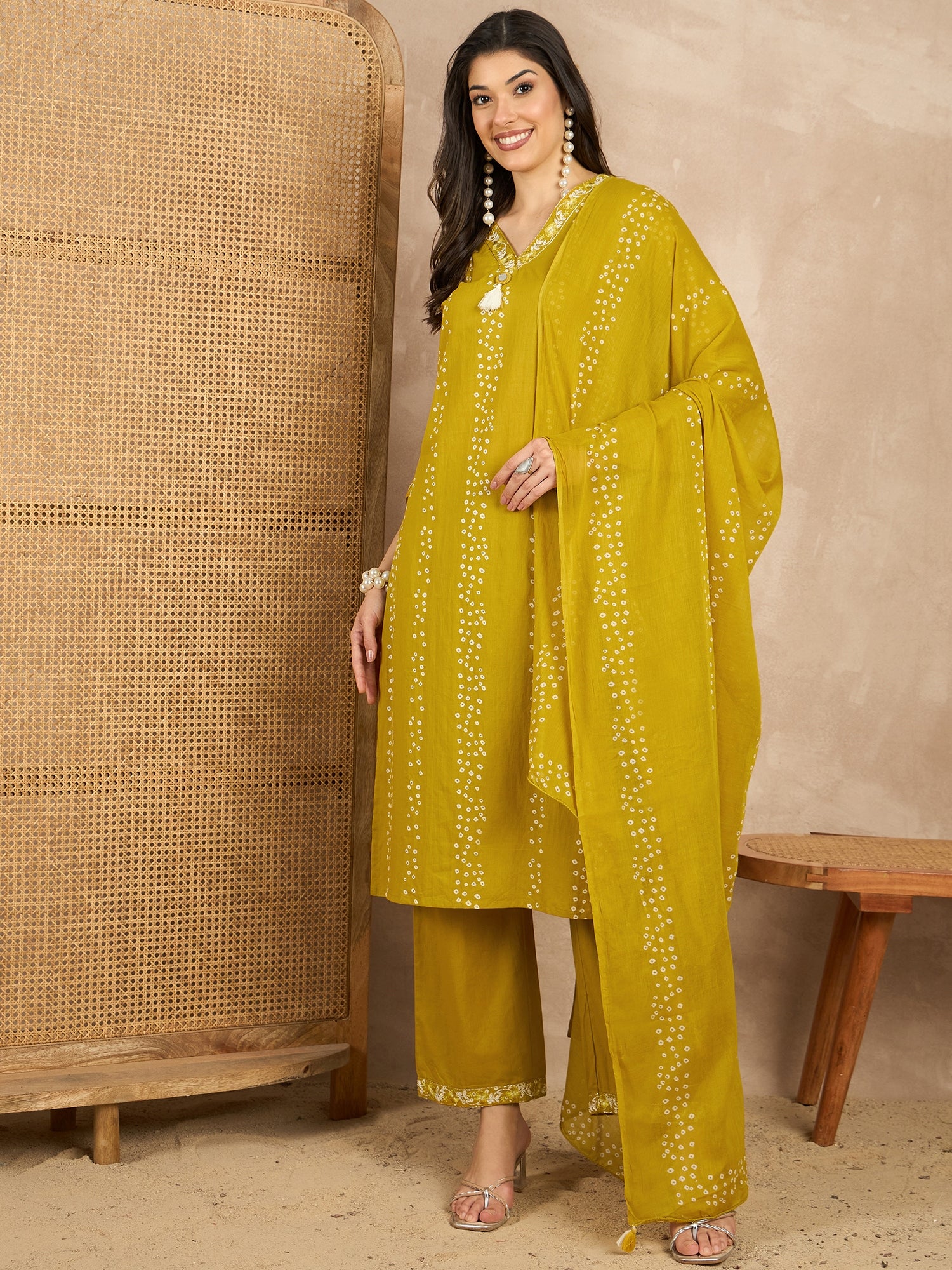 Women Printed Regular Mirror Work Pure Cotton Kurta with Trousers & With Dupatta