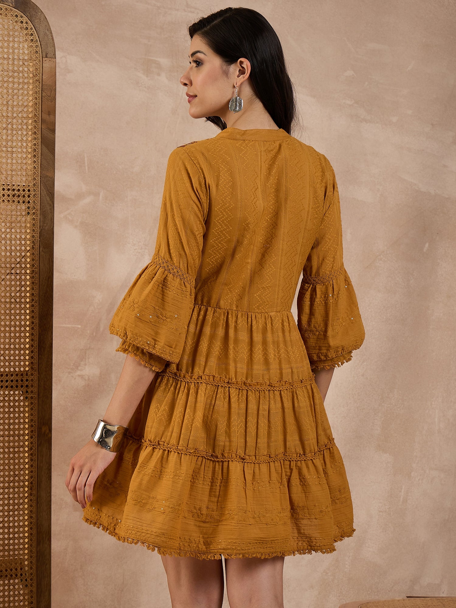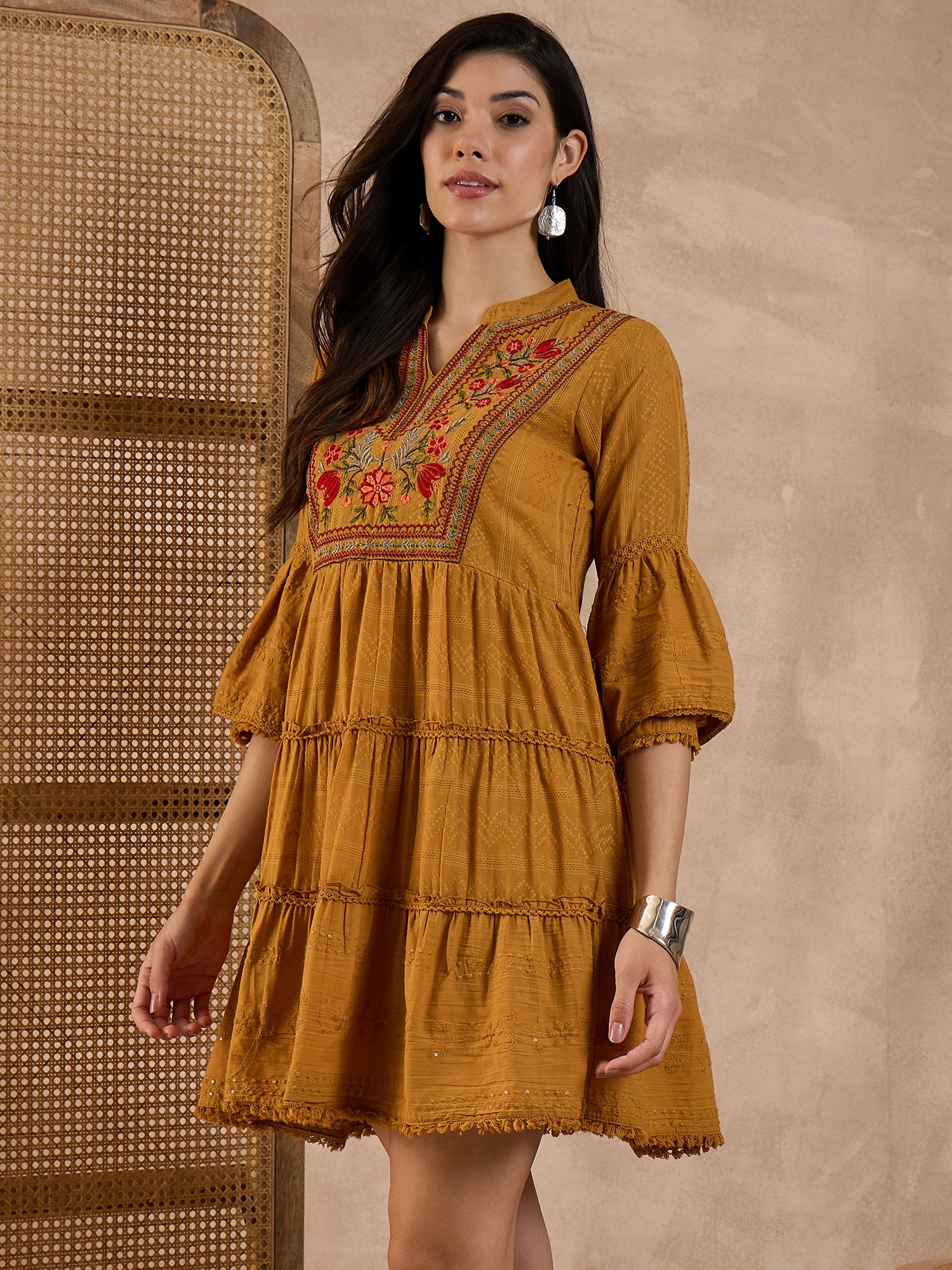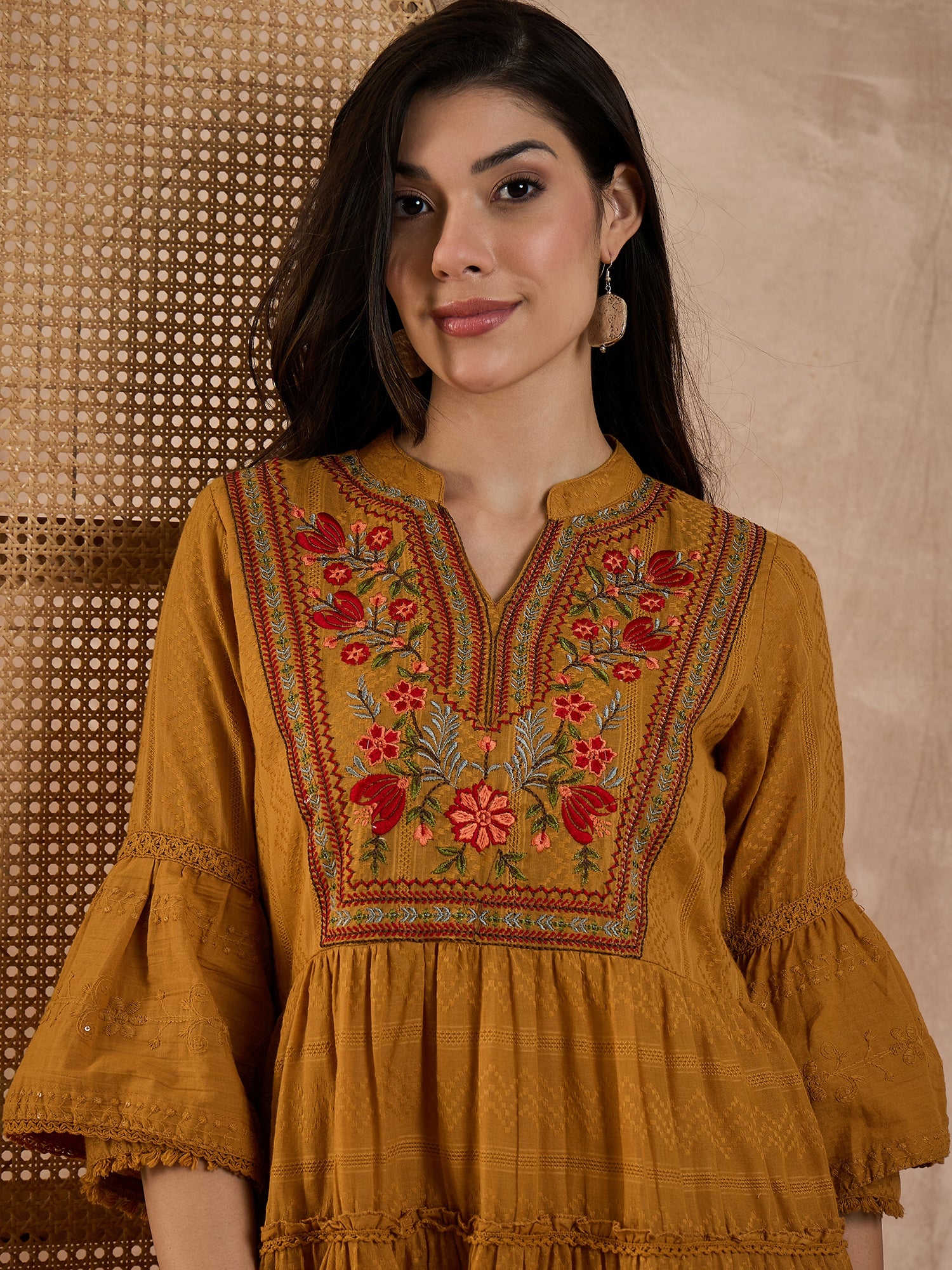 Women Embroidered Fit & Flared Pure Cotton Dobby Dress