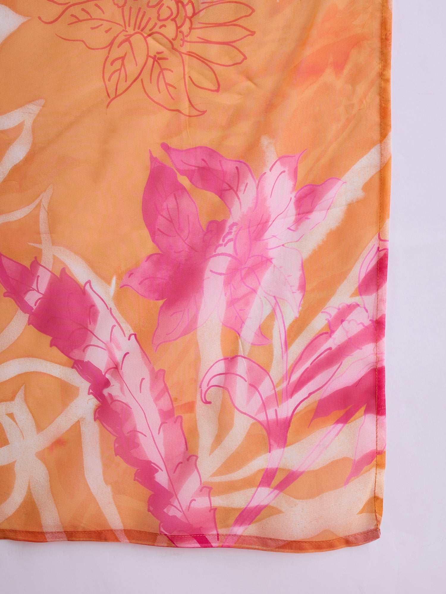 WOMEN PURE ORGANZA DIGITAL PRINTED KURTI EMBLISHED WITH BEADS AND STONE WORK ON YOKE ALONG WITH TROUSER AND DIGITAL PRINTED DUPATTA